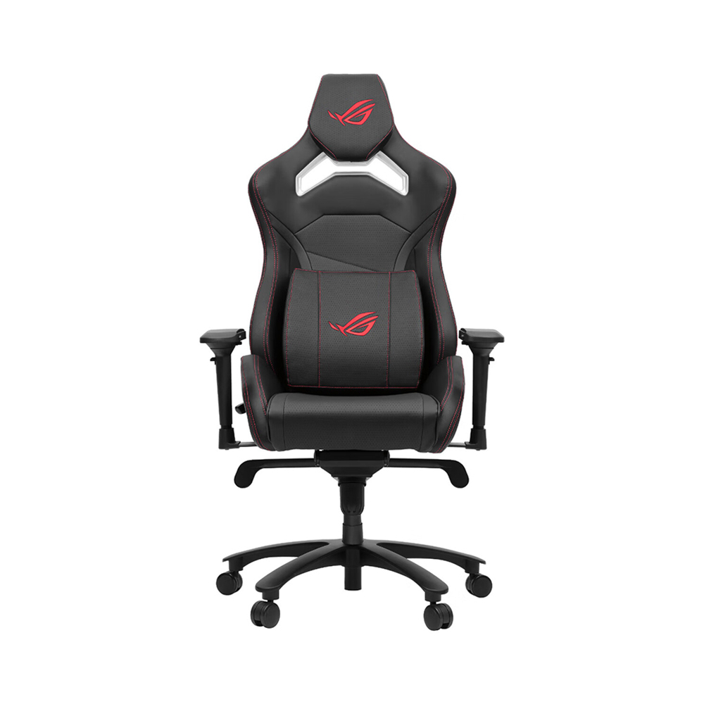 Игровое кресло ROG Chariot X Core в стиле гоночного автомобиля оснащено регулируемым подголовником, поясничной опорой из пеноматериала с эффектом памяти, подлокотниками 4D, механизмом наклона и прочным газлифтом 4-го класса.