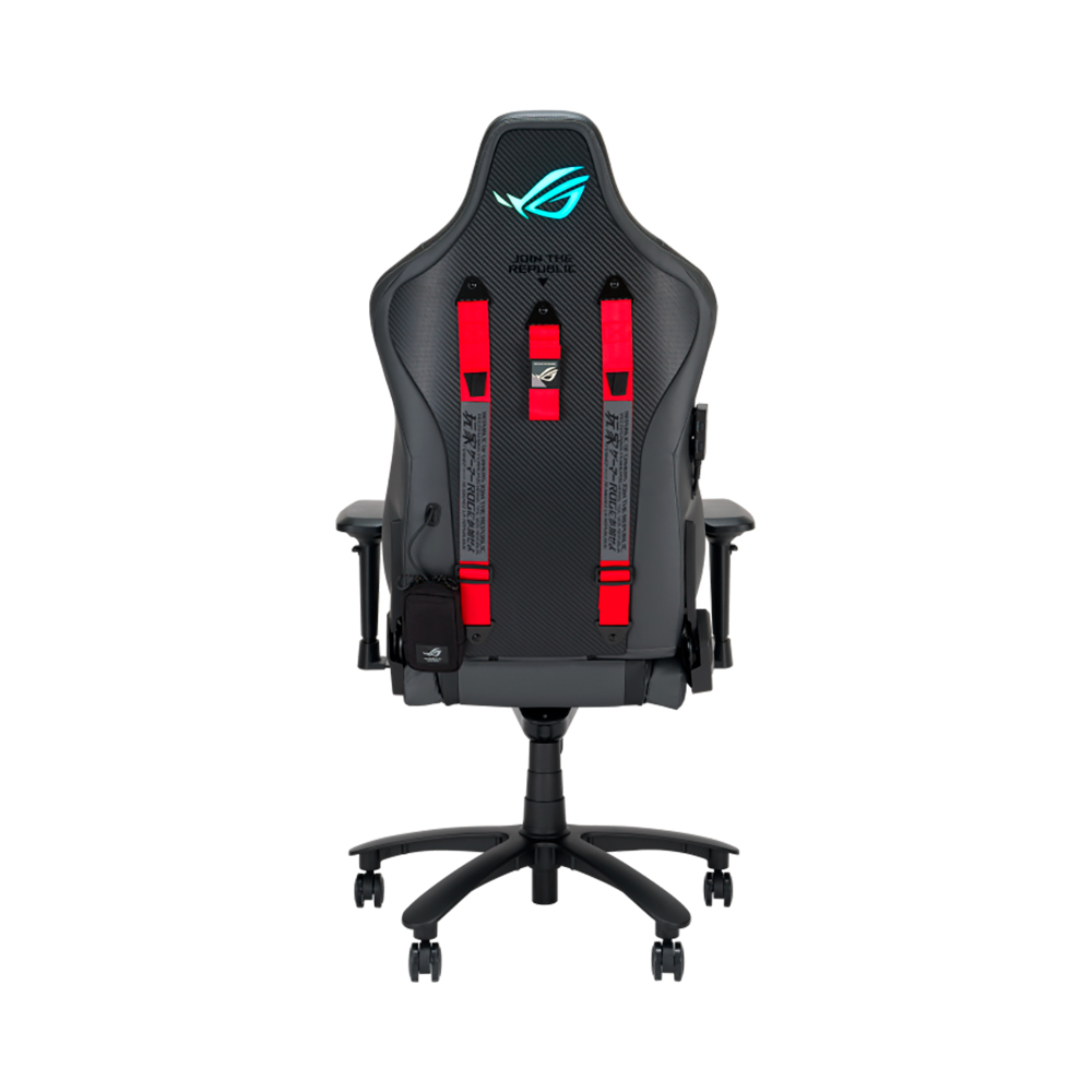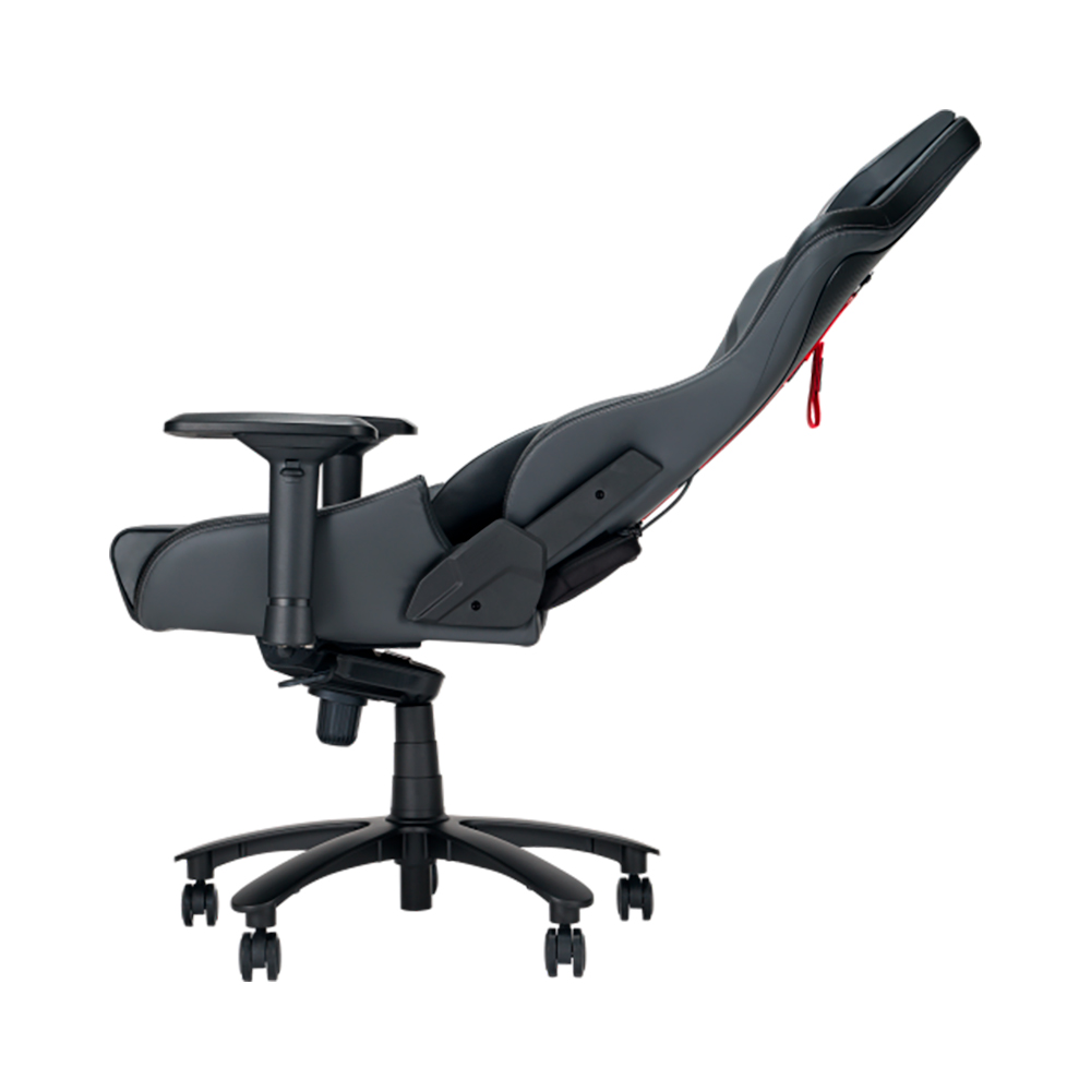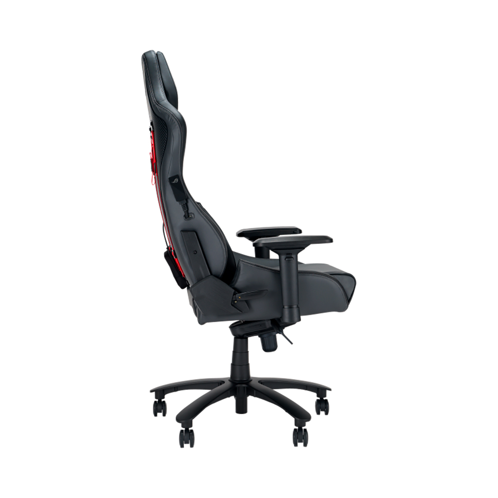 Игровое кресло ROG Chariot X в стиле гоночного автомобиля оснащено регулируемым подголовником, поясничной опорой из пеноматериала с эффектом памяти, подлокотниками 4D, механизмом наклона и прочным газлифтом 4-го класса.