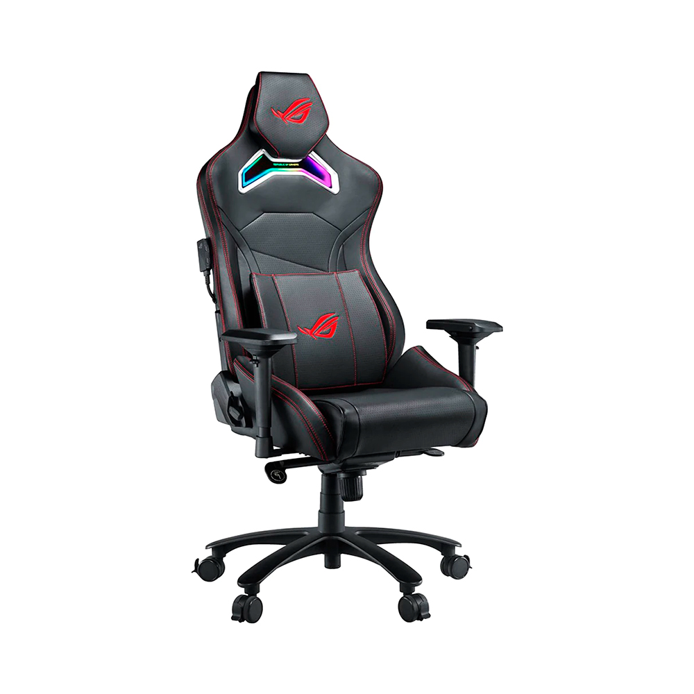 Игровое кресло ROG Chariot X в стиле гоночного автомобиля оснащено регулируемым подголовником, поясничной опорой из пеноматериала с эффектом памяти, подлокотниками 4D, механизмом наклона и прочным газлифтом 4-го класса.