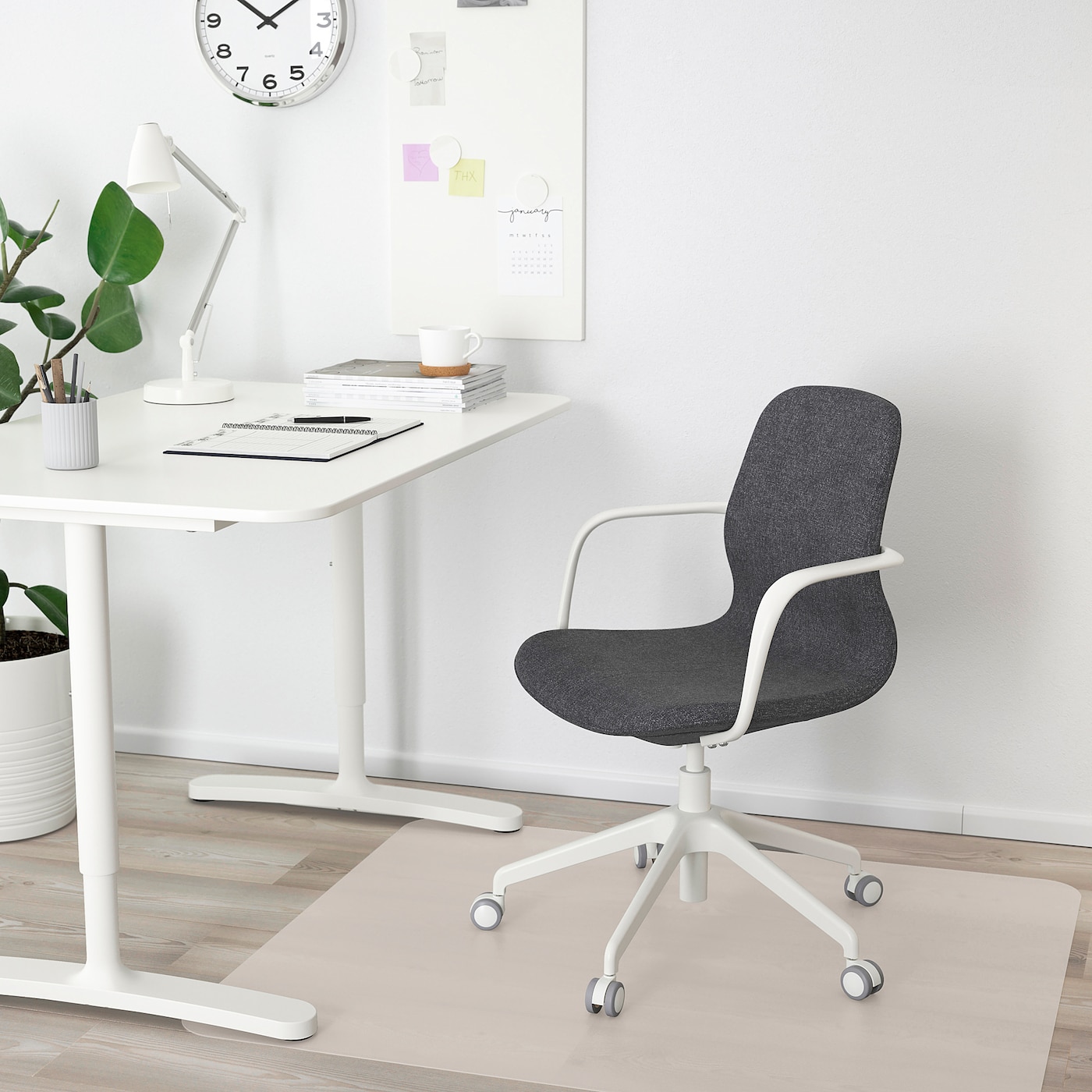 Кресло Ikea Långfjäll с подлокотниками, темно-серый / белый