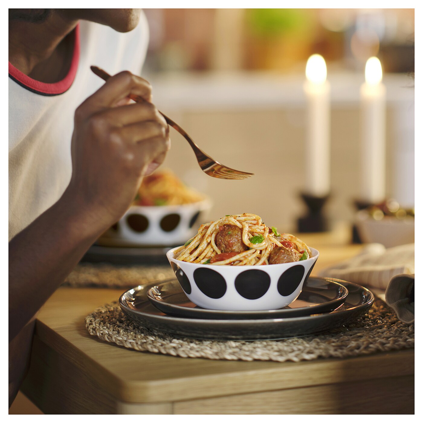 Не стесняйтесь комбинировать эту зеленую посуду OFTAST с белой посудой из той же серии, чтобы создать сервировку стола, которая будет одновременно индивидуальной и свежей.