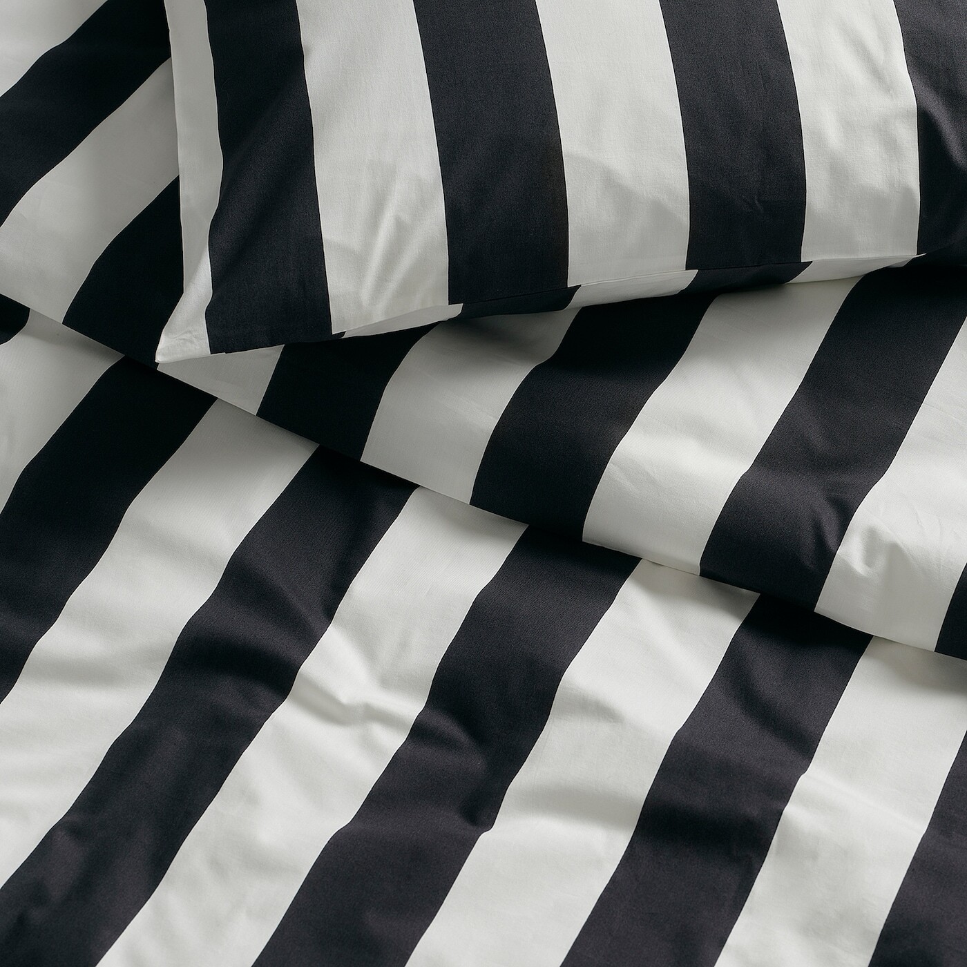Пододеяльник и наволочка Ikea Slånhöstmal, 150x200/50x80 см, черно-белый