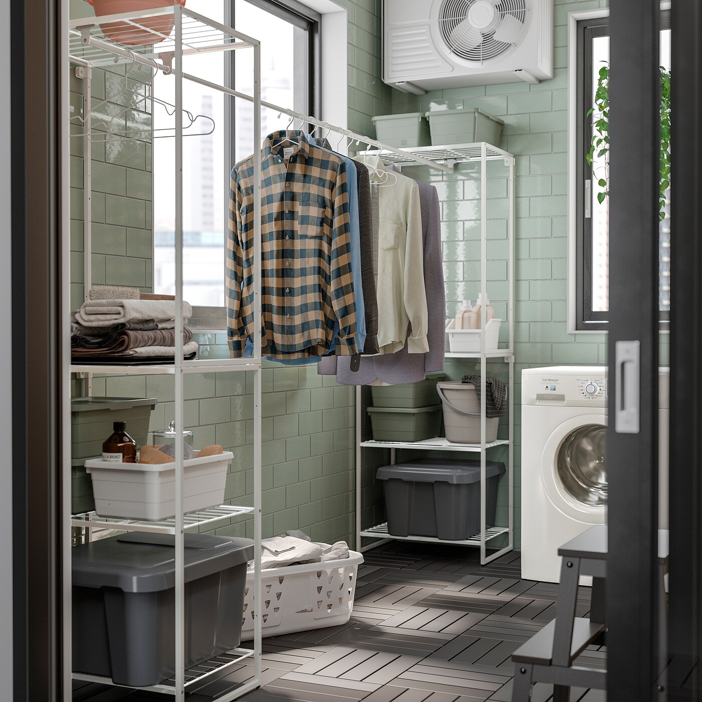 Система хранения JOSTEIN устойчива к влаге, поэтому ее можно использовать как на открытом воздухе, на балконе, так и в помещении, например, в прачечной или ванной комнате. Помогает поддерживать порядок в небольших помещениях!