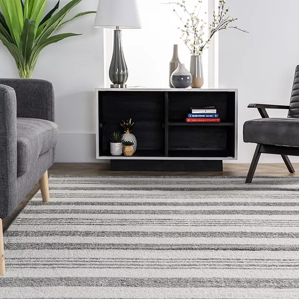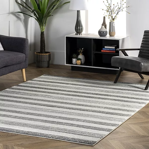 Если ваша комната нуждается в обновлении, вам стоит обратить внимание на этот полосатый ковер Kelsi от nuLOOM.