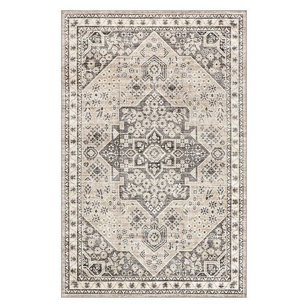 Добавьте акцент в любую комнату с этим водонепроницаемым ковриком с медальоном nuLOOM Eira.
