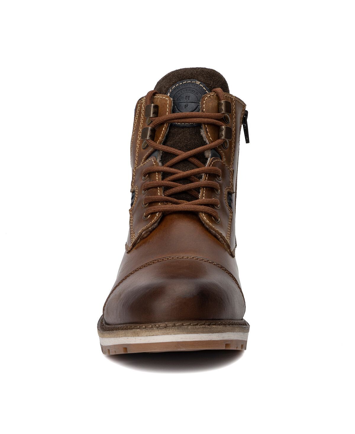 Сохраняйте ноги в тепле и прохладу в ботинках Jabari. Эти ботинки на шнуровке имеют закругленный носок, полированный дизайн, закрепленный металлическими проушинами из тесьмы и боковой застежкой-молнией.