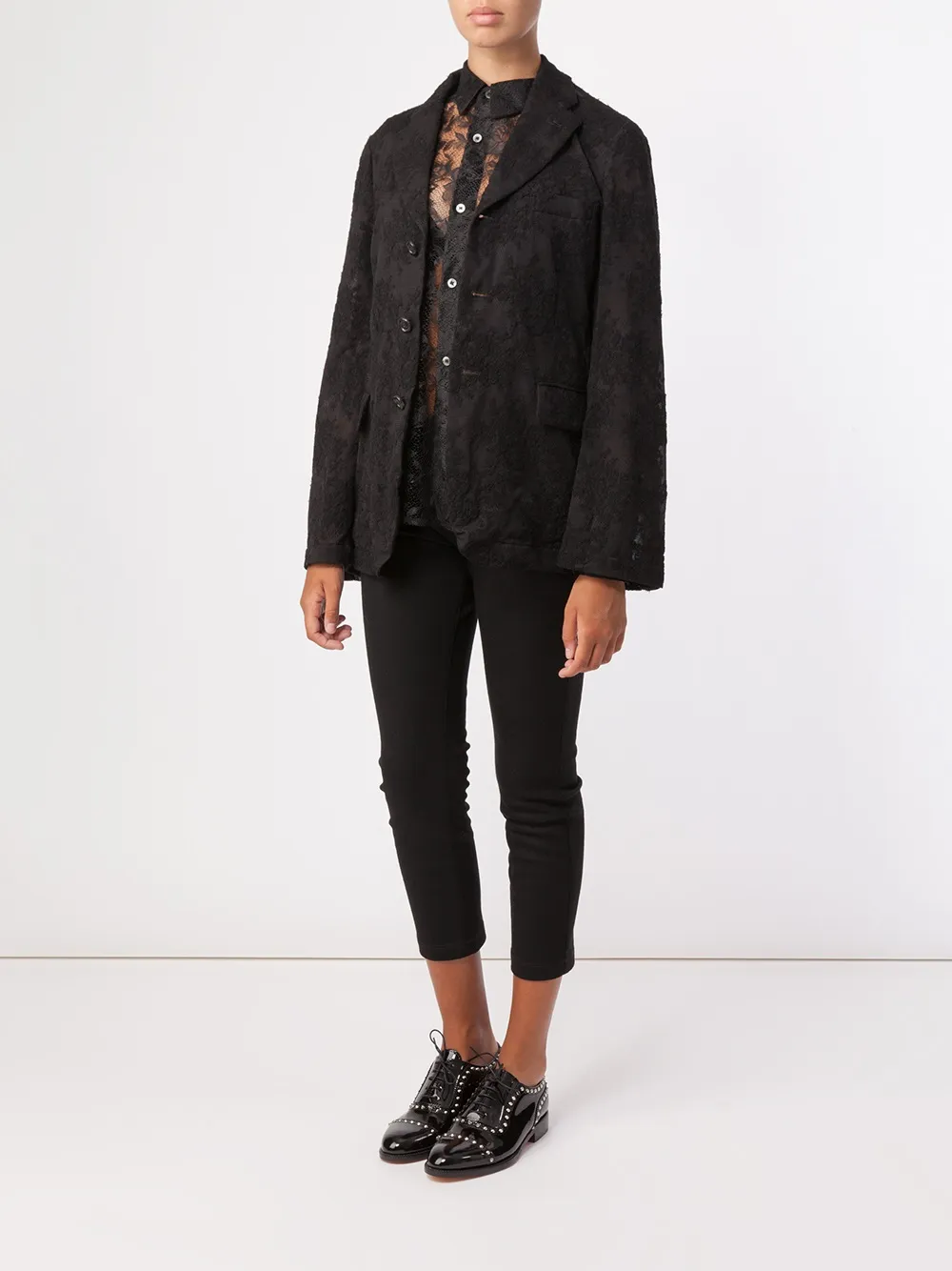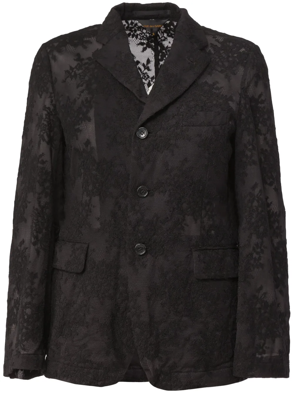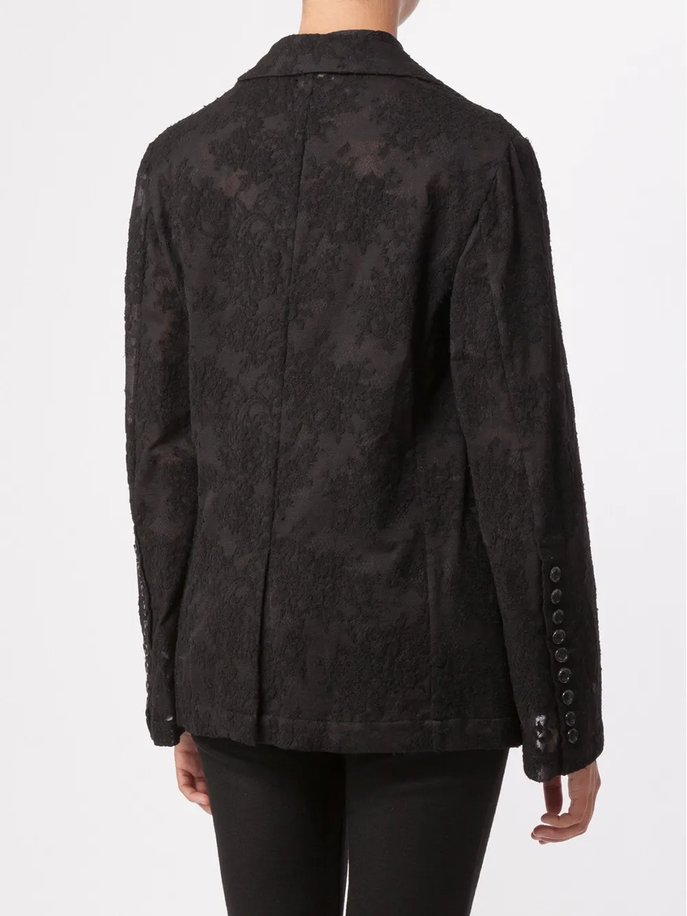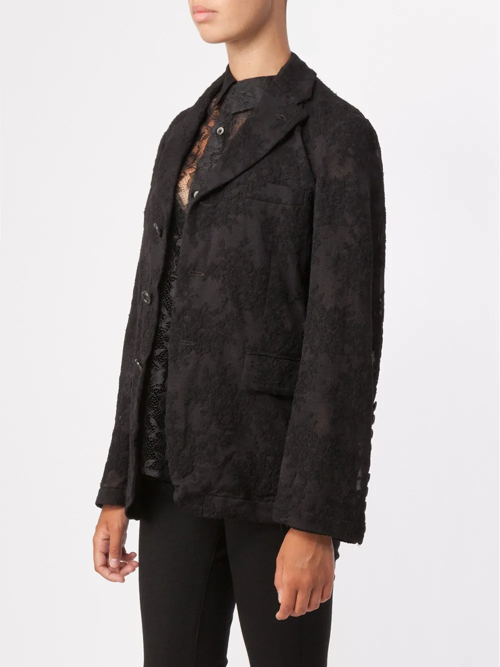 Черный кружевной пиджак из шерстяного микса от Comme Des Garçons.