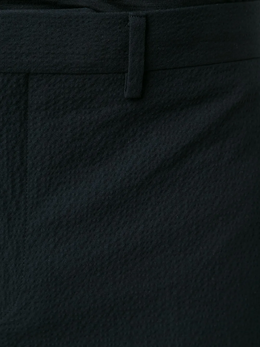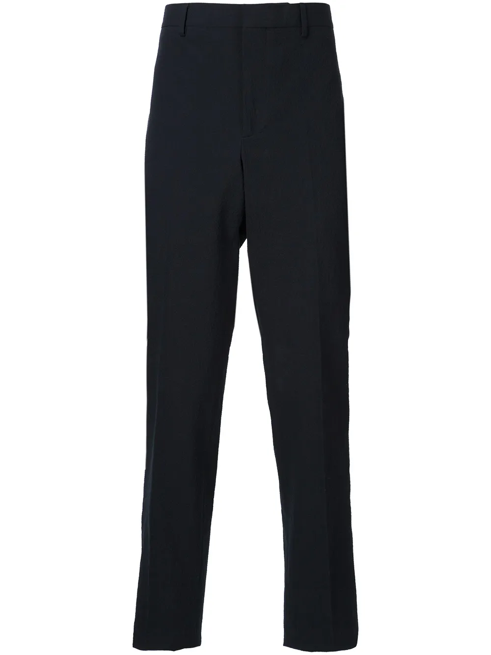Черные брюки из эластичного хлопка строгого кроя от Givenchy. Пояс с петлями для ремня, потайная застежка спереди, задние карманы с листочкой.