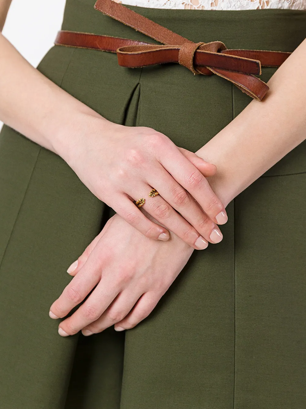 Открытое кольцо 'Wheat' из позолоченной латуни от Aurelie Bidermann. Дизайн в виде колосьев пшеницы. Ширина 3-5мм.
