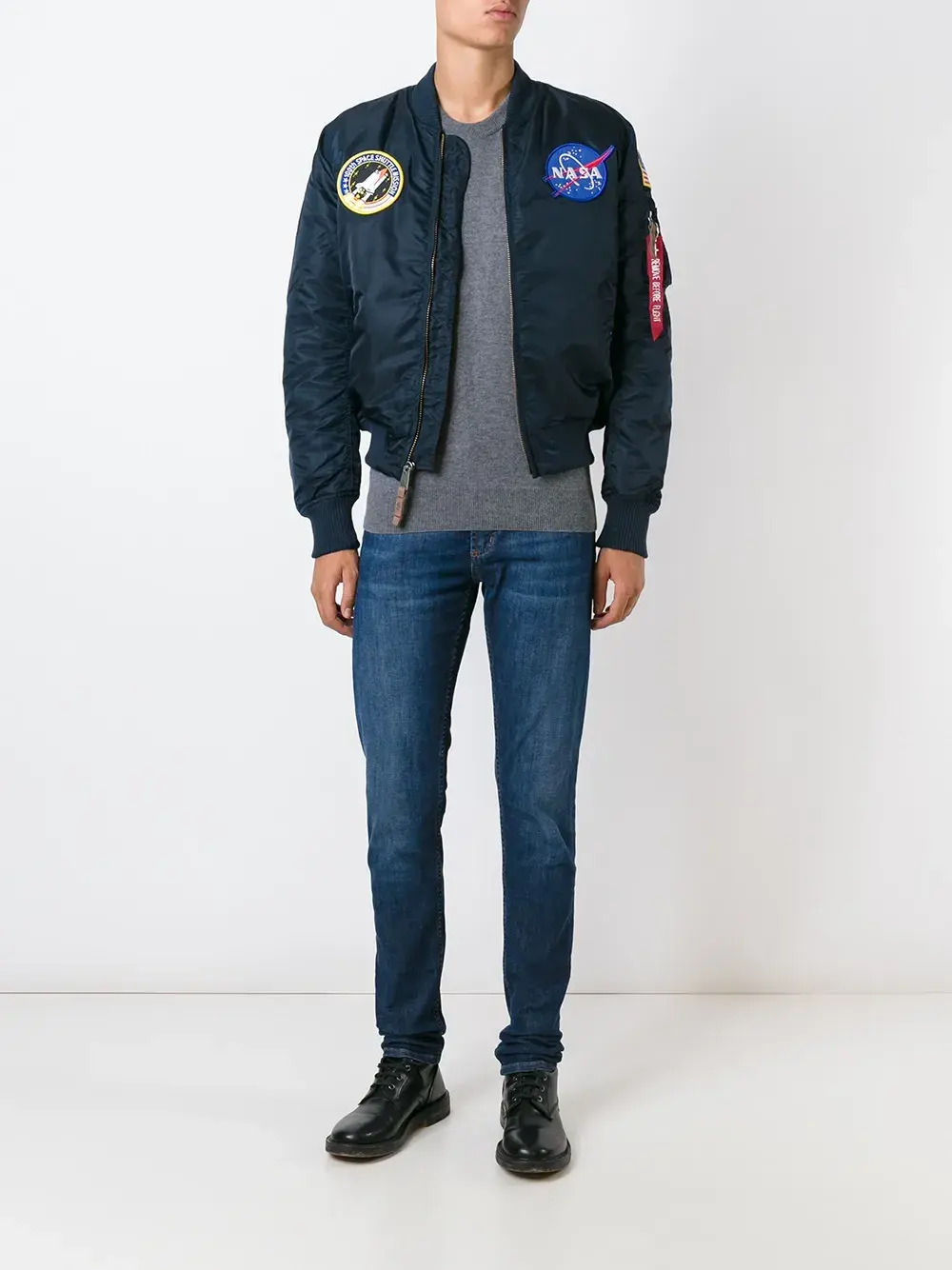 Темно-синяя куртка-бомбер 'NASA MA-1' от Alpha Industries.