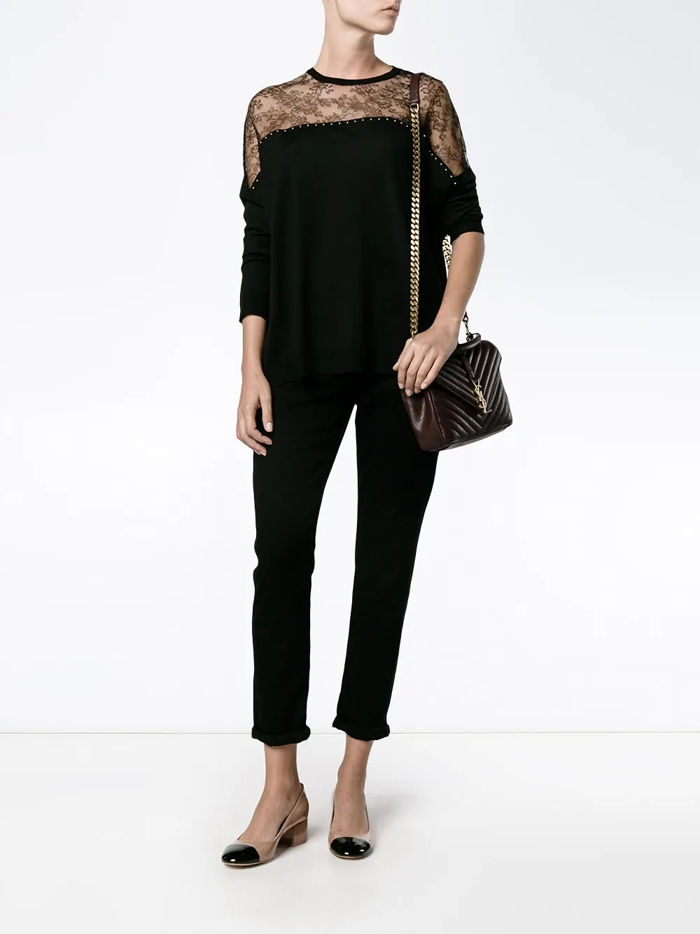 Джемпер с кружевной панелью VALENTINO GARAVANI, черный
