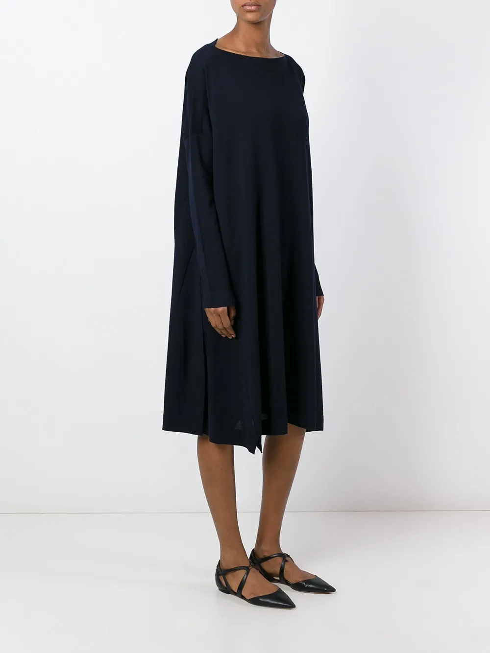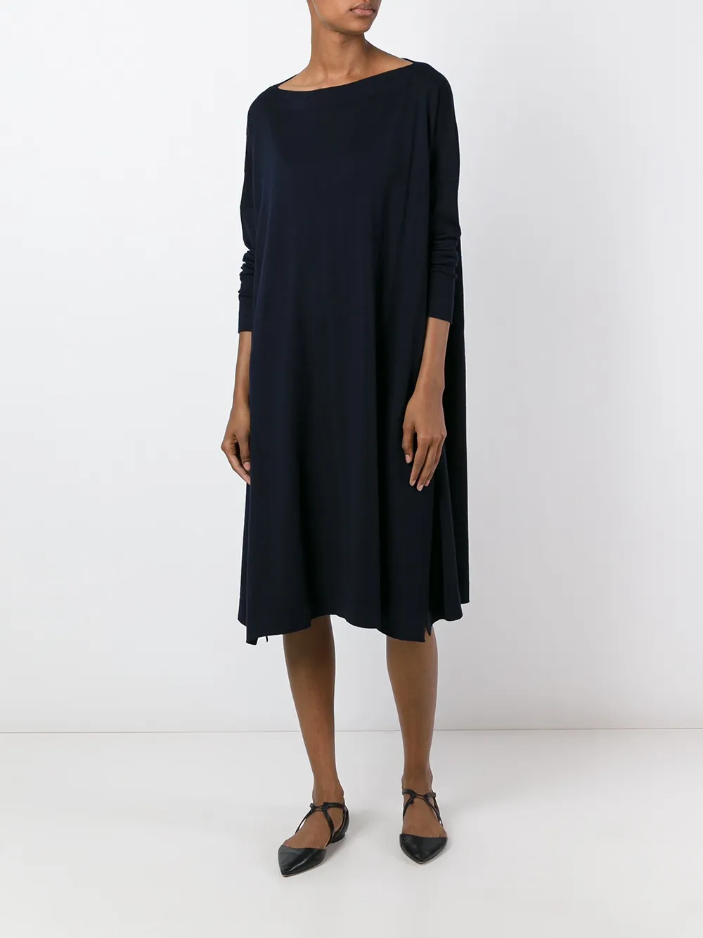 Темно-синее шерстяное свободное платье с вырезом-лодочка от Daniela Gregis.
