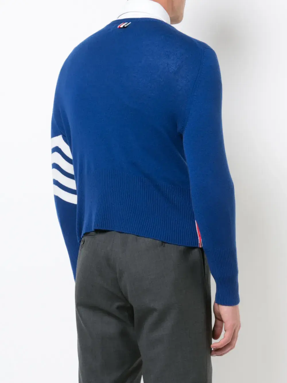 Синий кашемировый джемпер с контрастными полосками от Thom Browne(Том Браун).