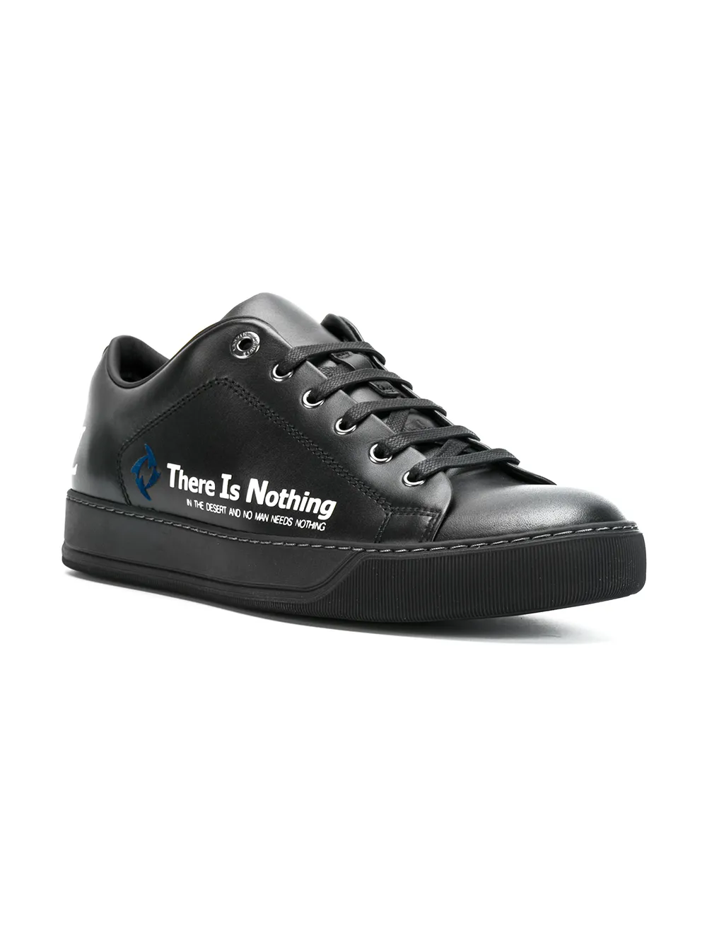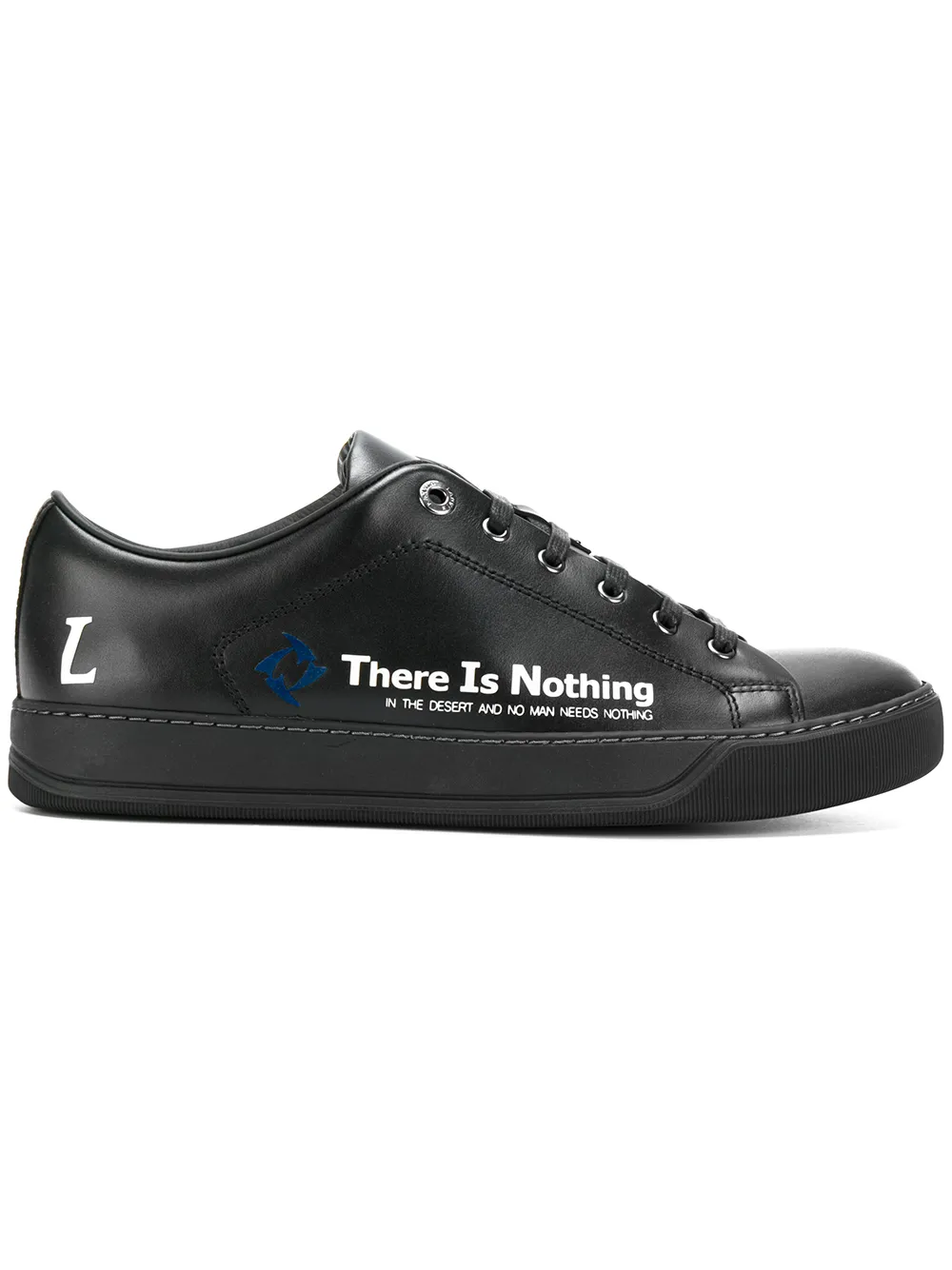 Черные кожаные кроссовки со слоганом от Lanvin(Ланвин). Шнуровка спереди, закругленный носок, стелька с тиснением бренда, плоская резиновая подошва.