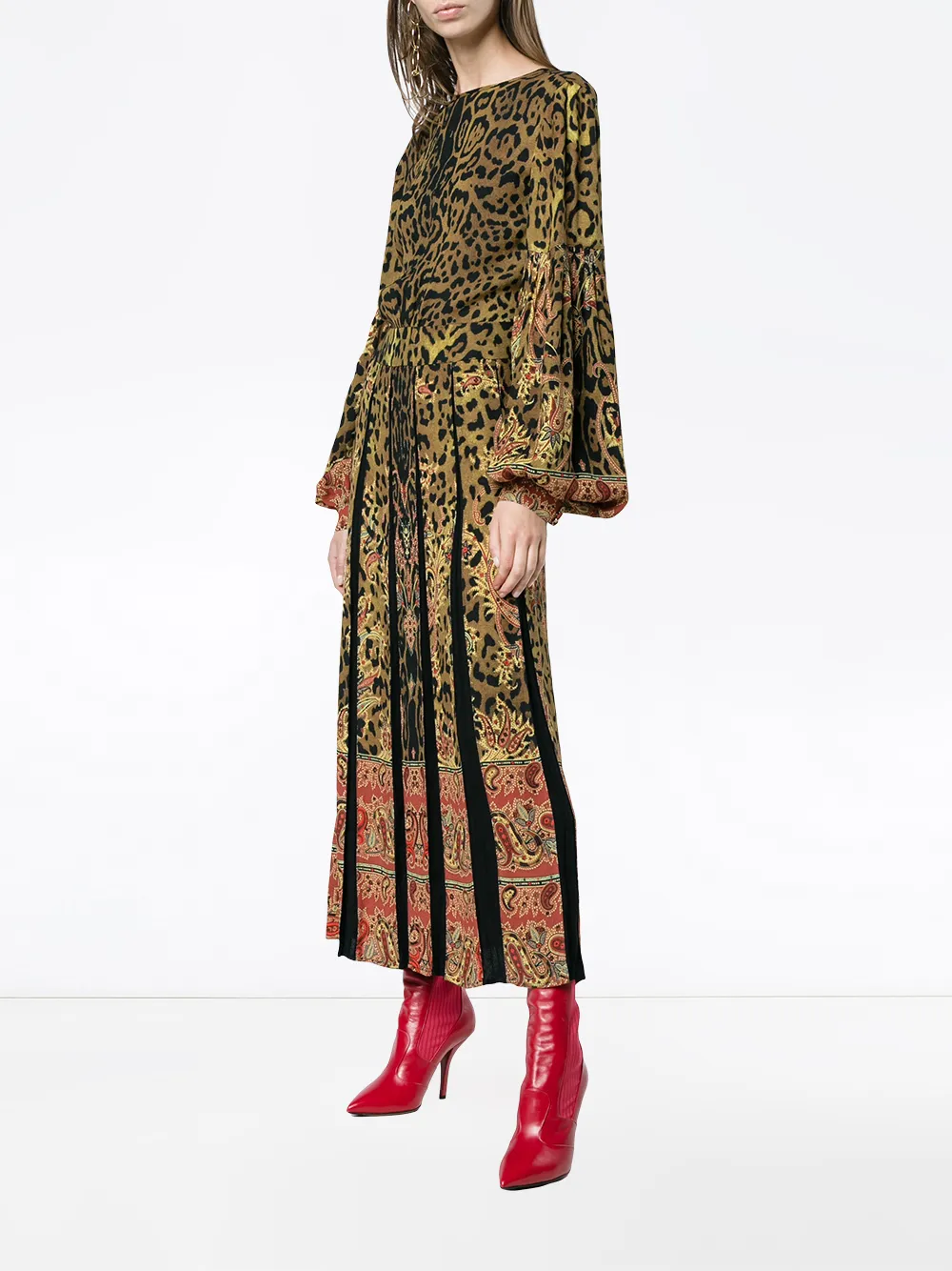 Плиссированное платье  с леопардовым принтом ETRO, коричневый