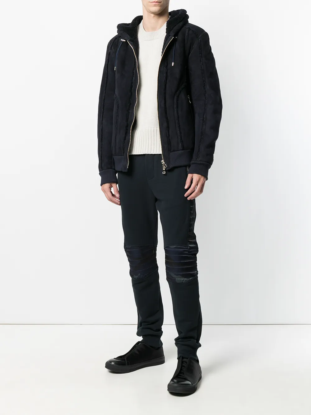 Подробнее о товаре: Olivier Rousteing continues his evolution of Balmain’s classic styles into the brand’s AW17 collection and beyond. Style and comfort come combined with a tough-luxe edge in these navy blue camouflage knee panel sweatpants from Balmain featuring an elasticated drawstring waist, ribbed details, a dropped crotch, elasticated cuffs, side zipped pockets and a camouflage pattern.