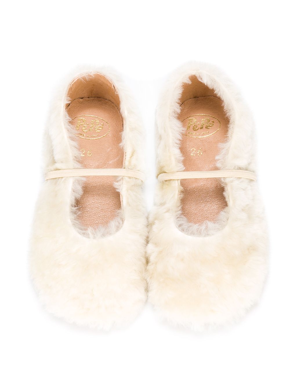 Молочные меховые слипперы из кожи и шерсти ягненка от Pèpè.