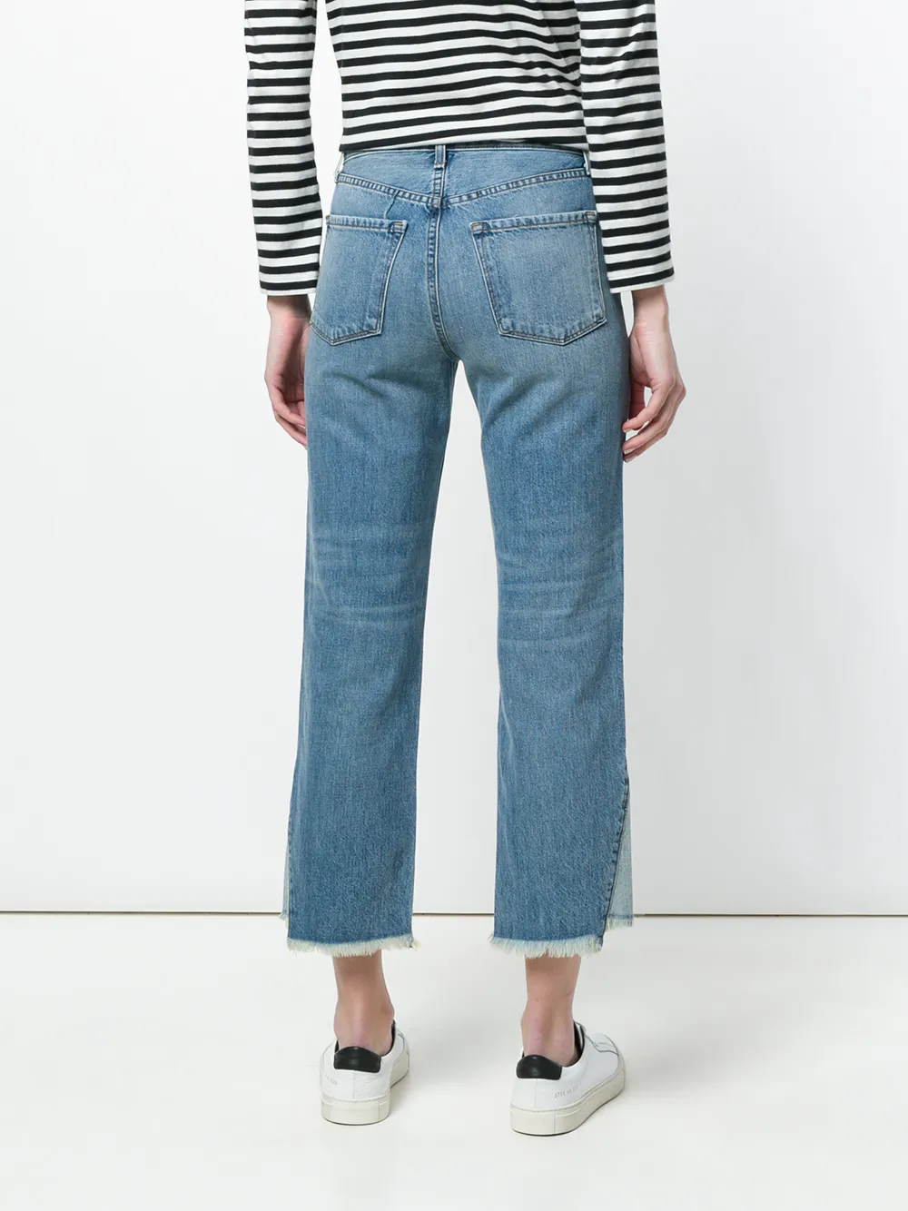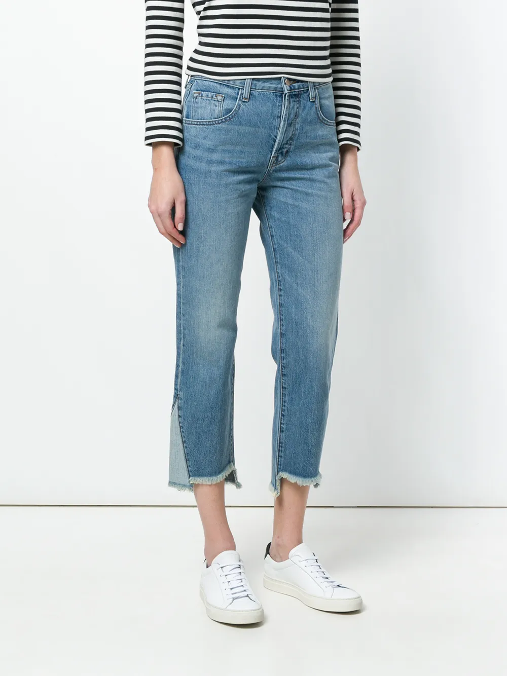 Голубые укороченные асимметричные джинсы из хлопкового микса от J Brand.