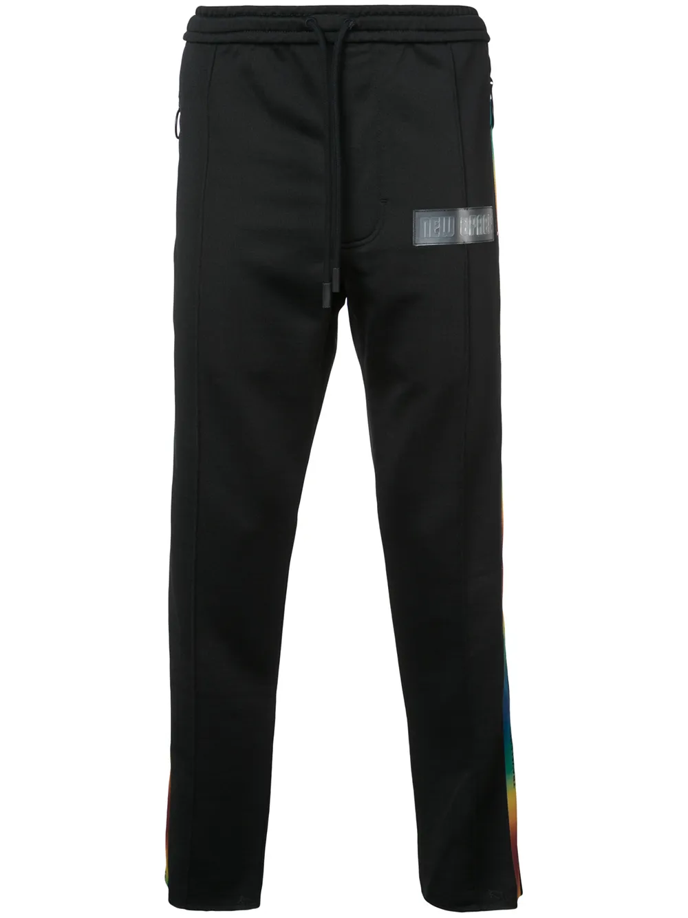 Модель из капсульной коллекции в коллаборации с Art Dad. Эластичный пояс на шнурке, боковые карманы на молнии, узкий крой, манжеты на молнии.