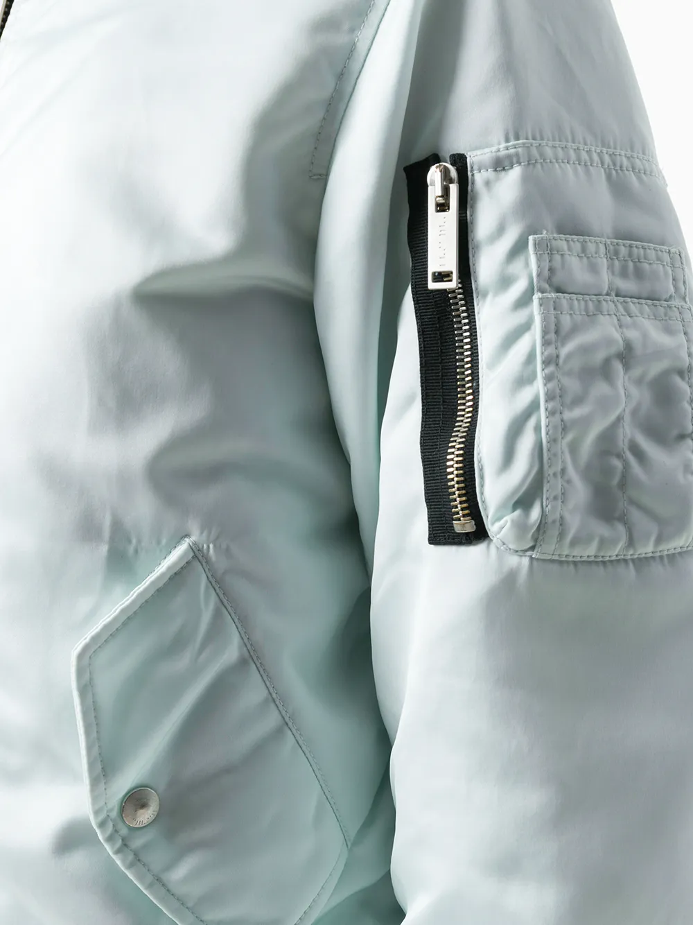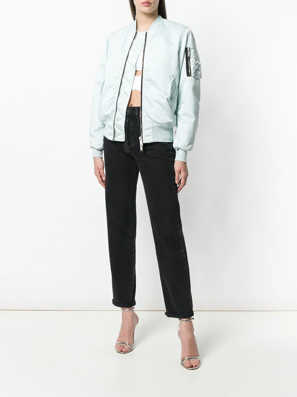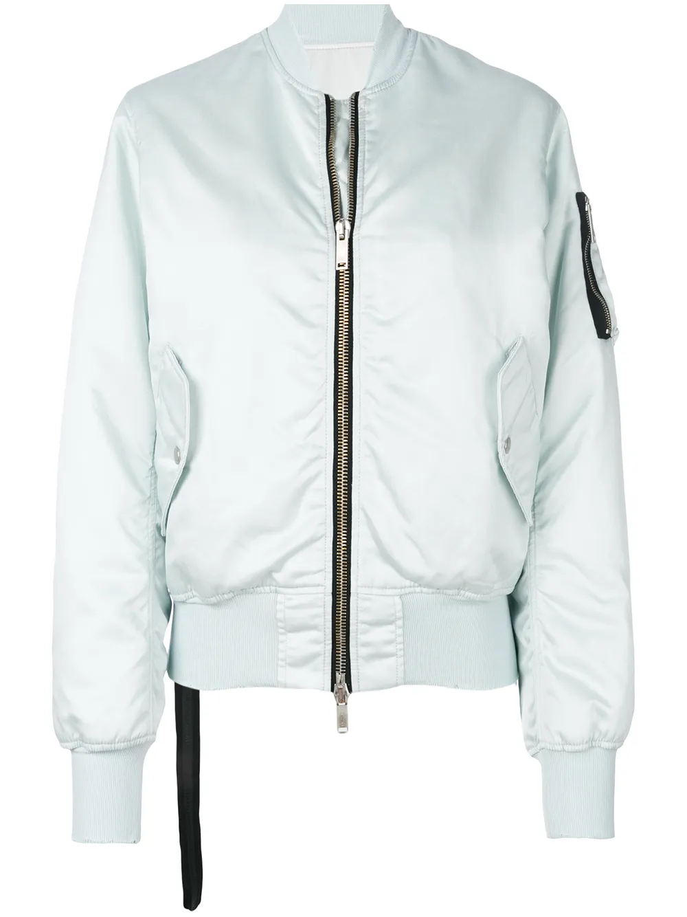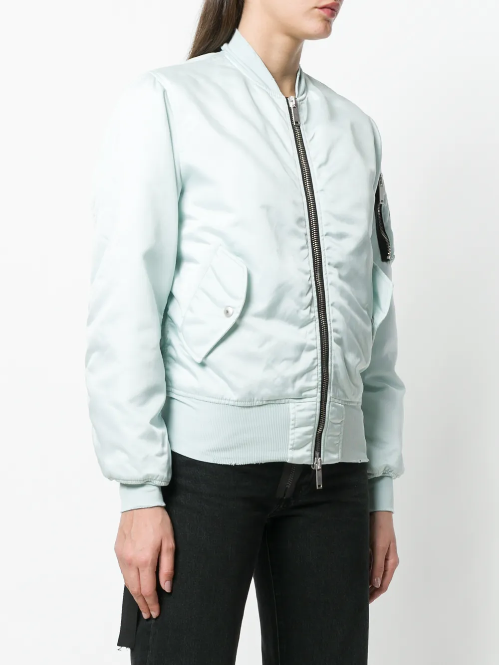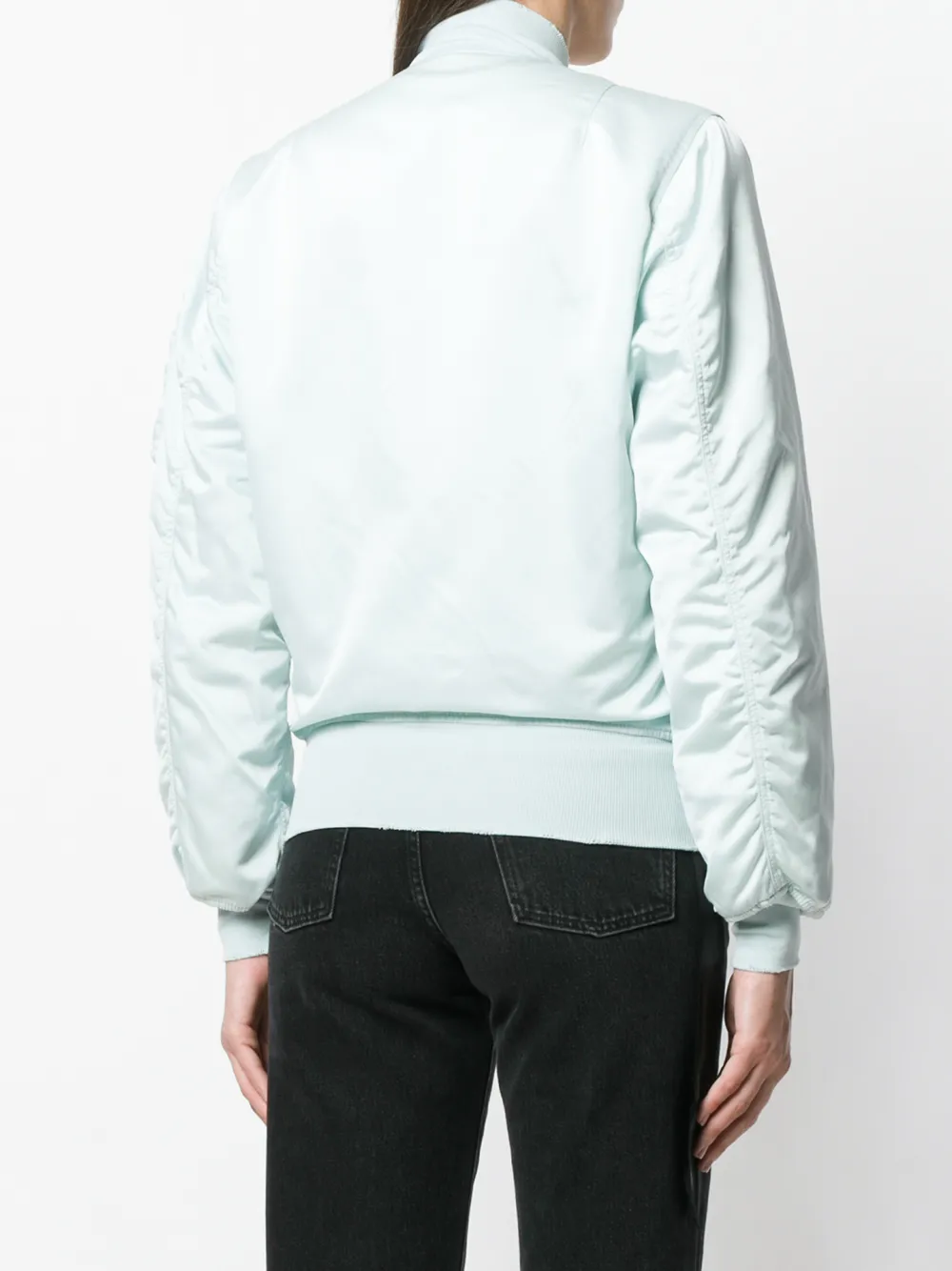Голубая укороченная куртка-бомбер от Unravel Project. Застежка на молнии спереди, обрезанная длина, карманы с клапанами сбоку.