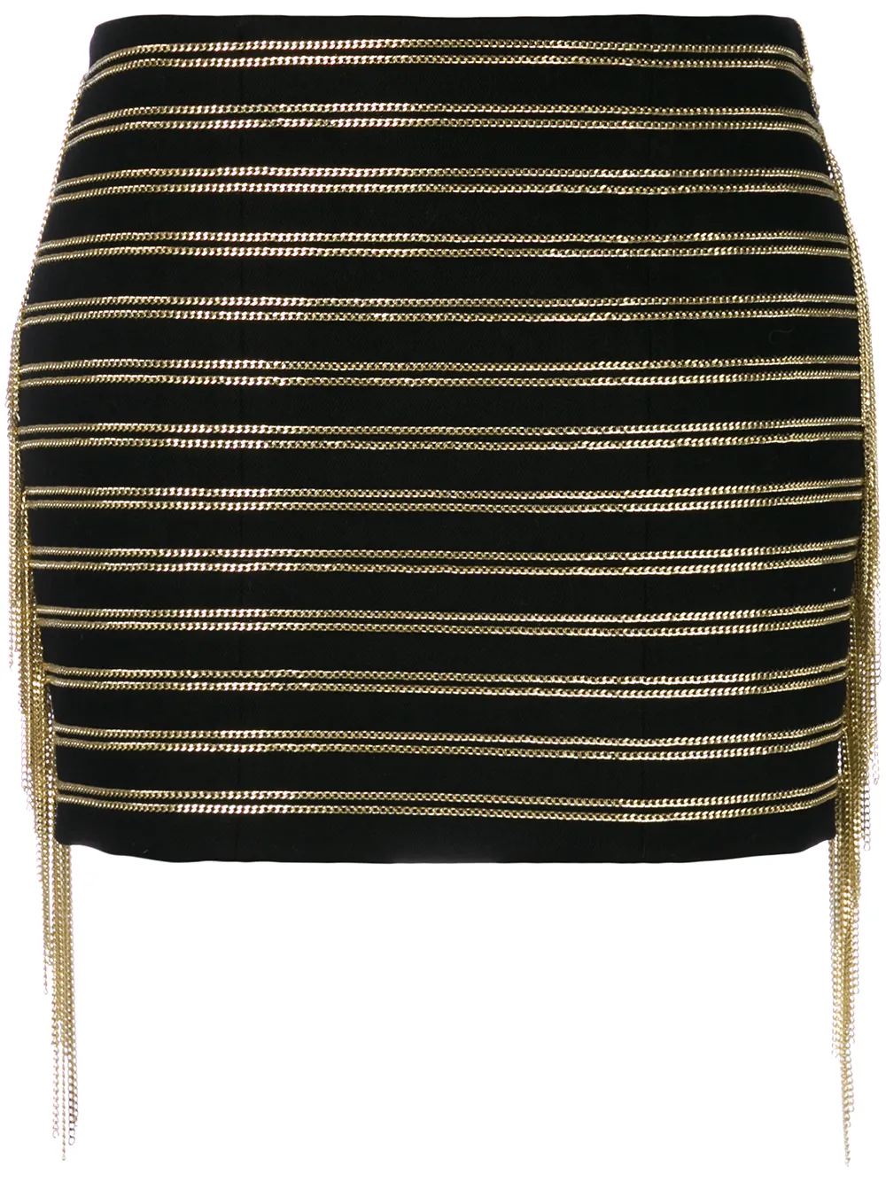 Chain embellished skirt от Balmain (Бальман). Завышенная талия, золотистая отделка с цепочкой, короткая длина и короткая длина.