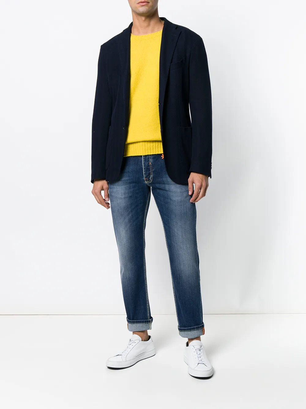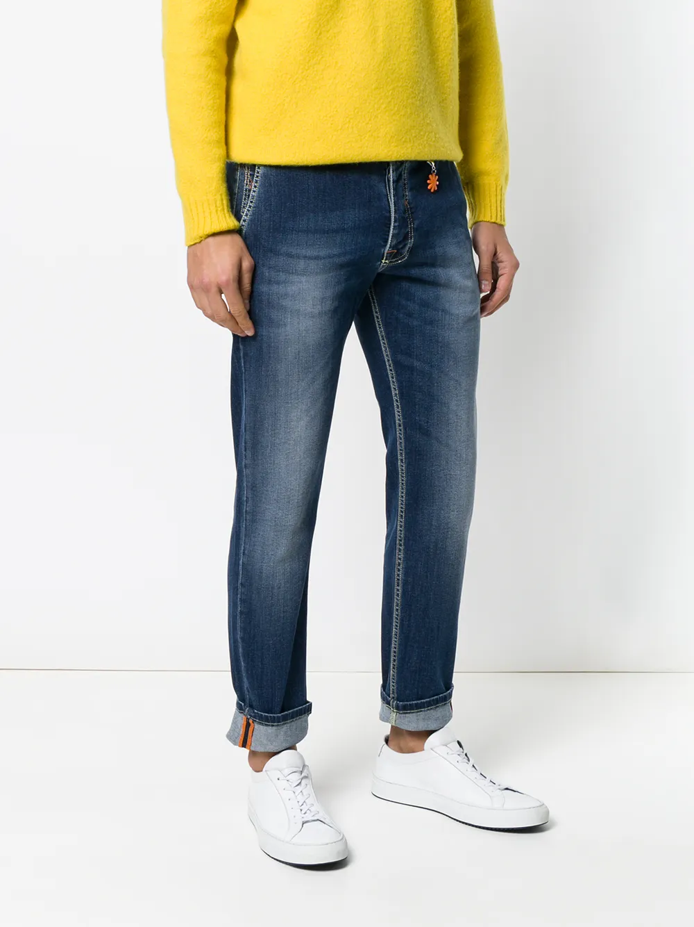 Темно-синие выбеленные джинсы узкого кроя из эластичного хлопка от Manuel Ritz.