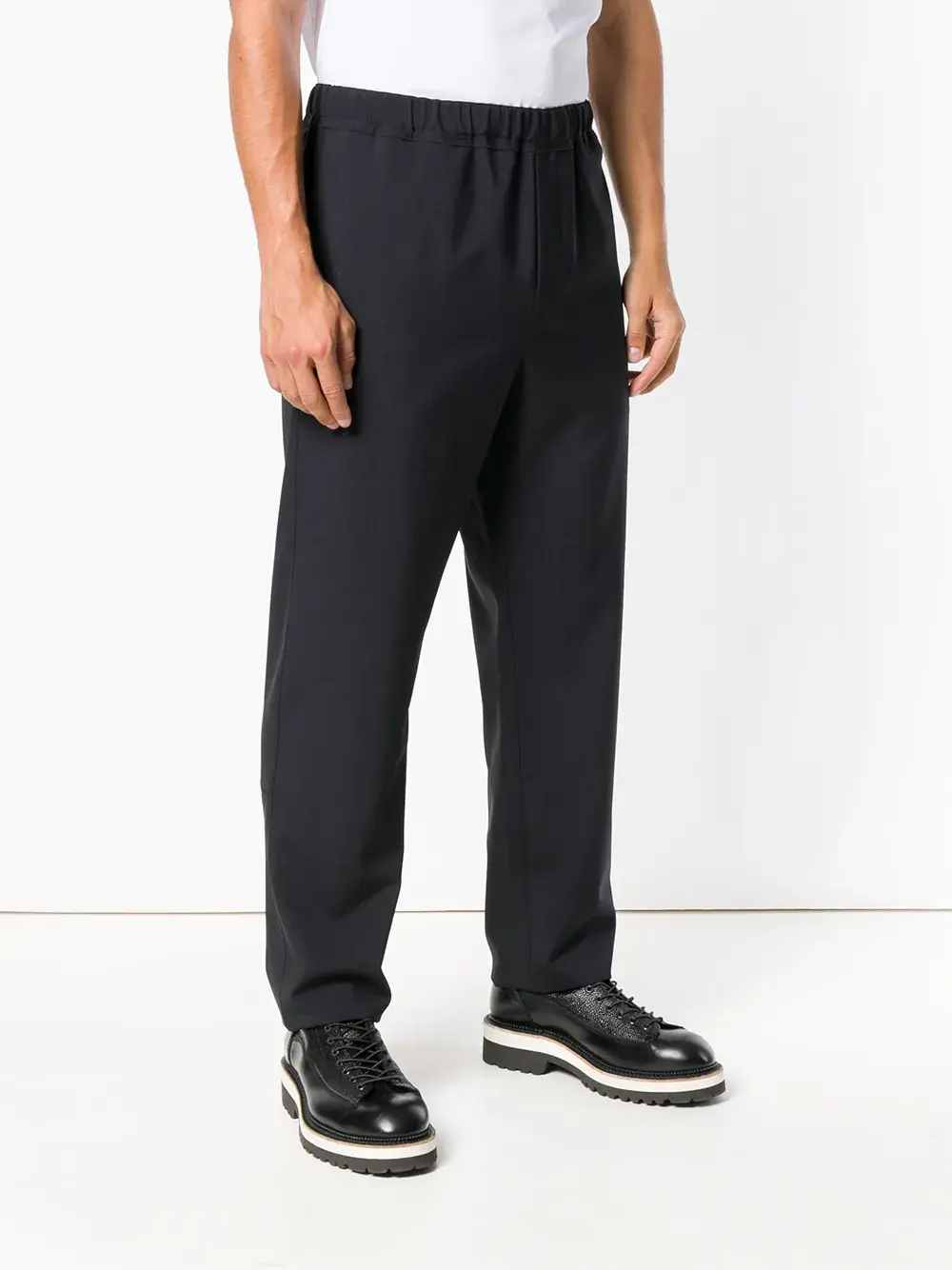 Брюки с эластичным поясом от OAMC. Эластичный пояс и свободный силуэт. Цвет: синий.