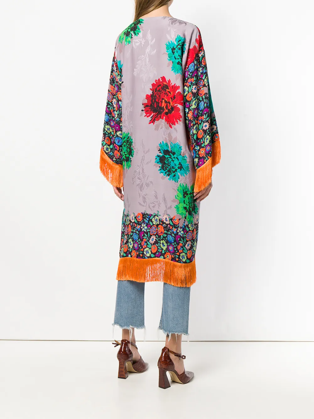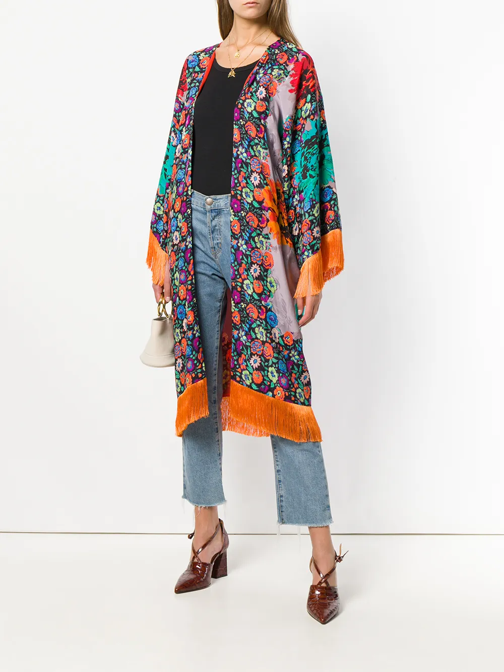 Floral print poncho от ETRO. Открытый перед, длинные широкие рукава, цветочный принт, края с бахромой и средней длины.