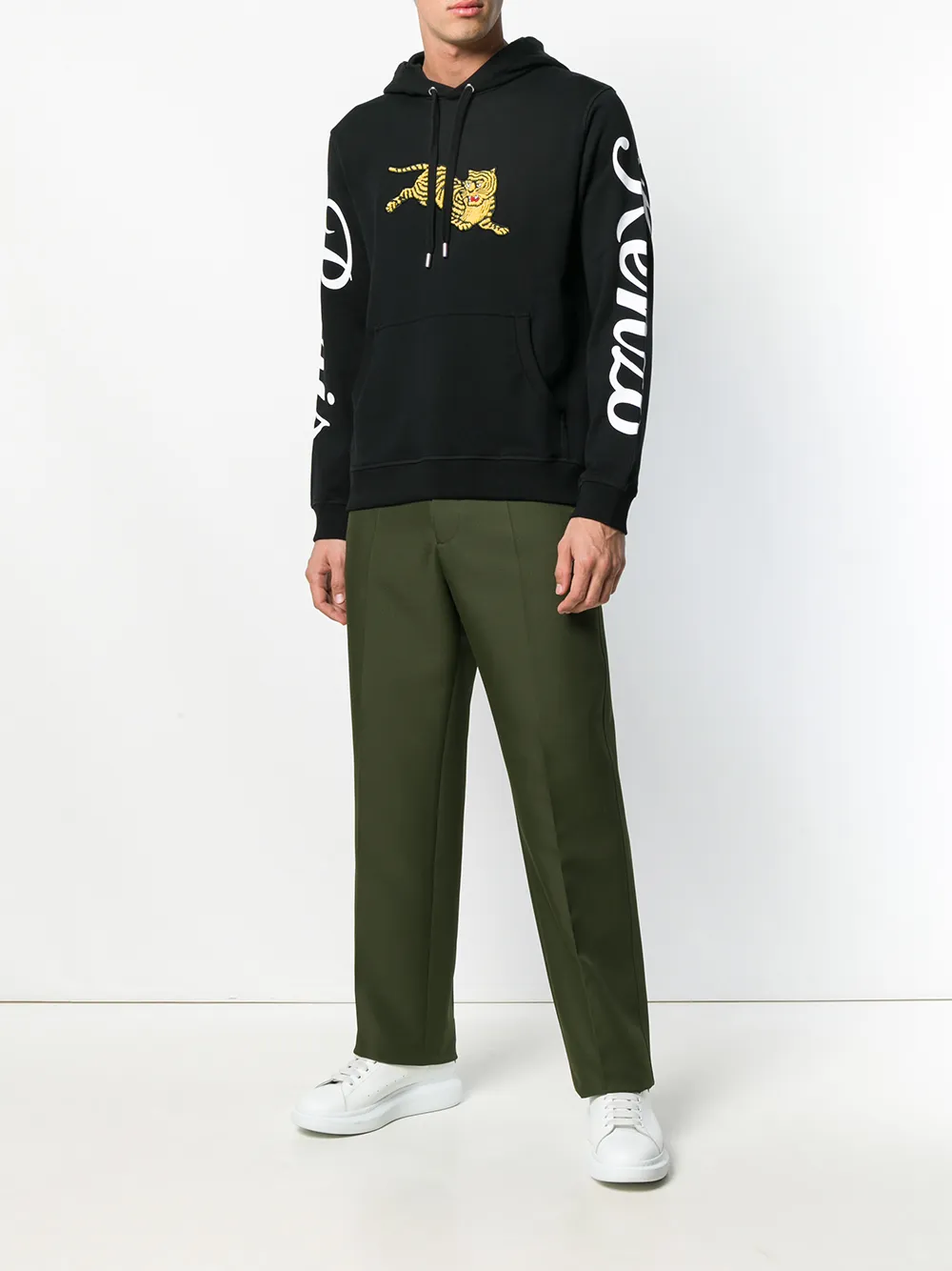 Толстовка с капюшоном 'Jumping Tiger' от Kenzo (Кензо). Капюшон на шнурке, длинные рукава и карман-муфта. Цвет: черный.