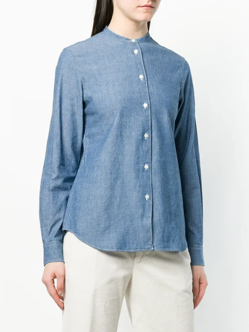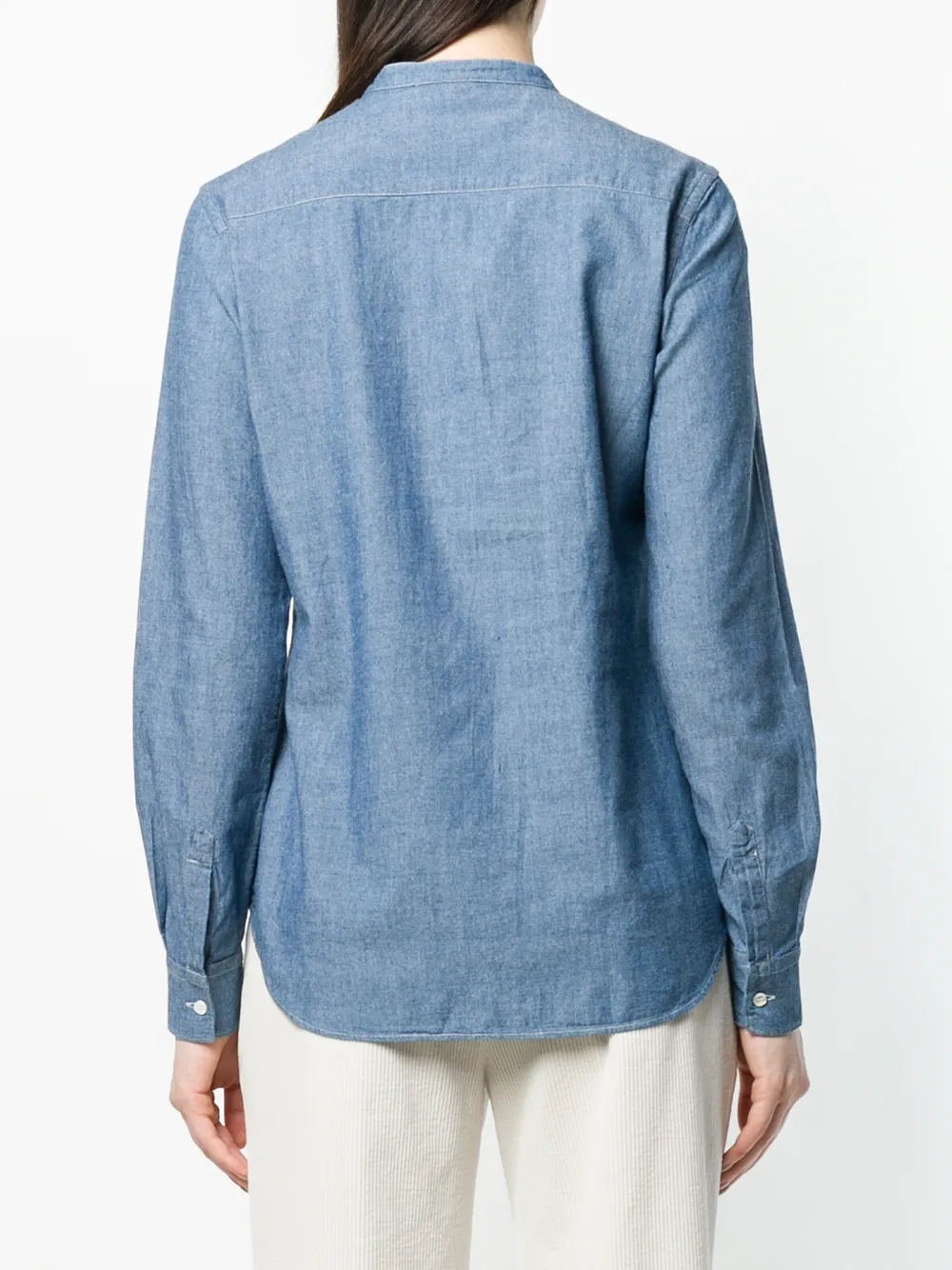 Синяя хлопковая рубашка свободного кроя от Aspesi. Длинные рукава, застежка на пуговицы.