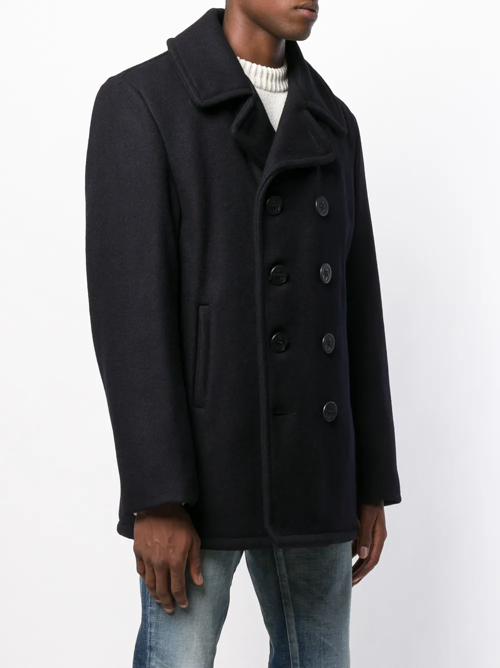 Двубортное пальто от Schott. Зазубренные лацканы, длинные рукава, вышитый логотип спереди, боковые карманы и прямой крой.