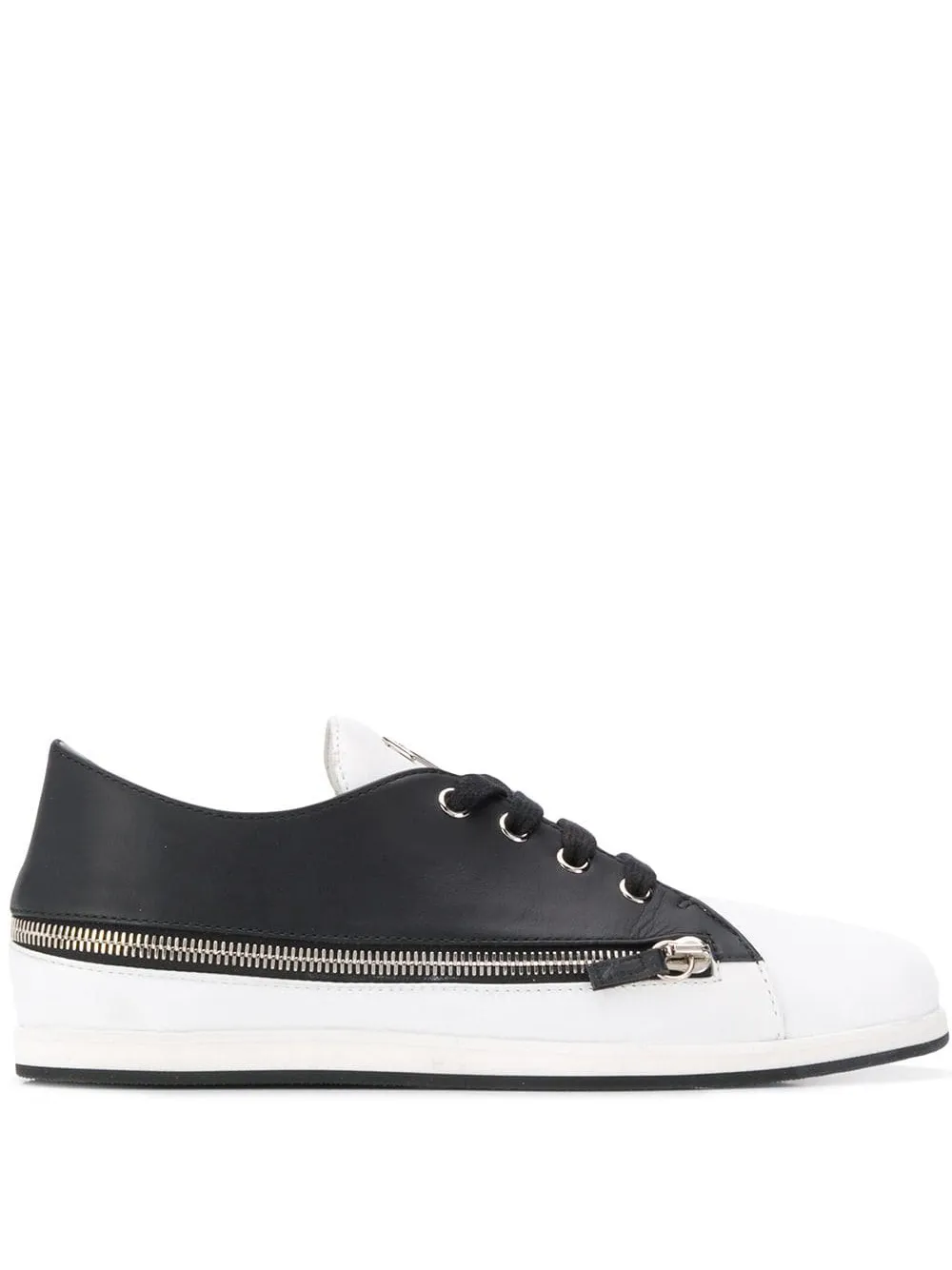 Кроссовки на молнии от Giuseppe Zanotti (Джузеппе Занотти). Закругленный носок, шнуровка спереди, боковая молния, серебристый металлический логотип и плоская резиновая подошва.
