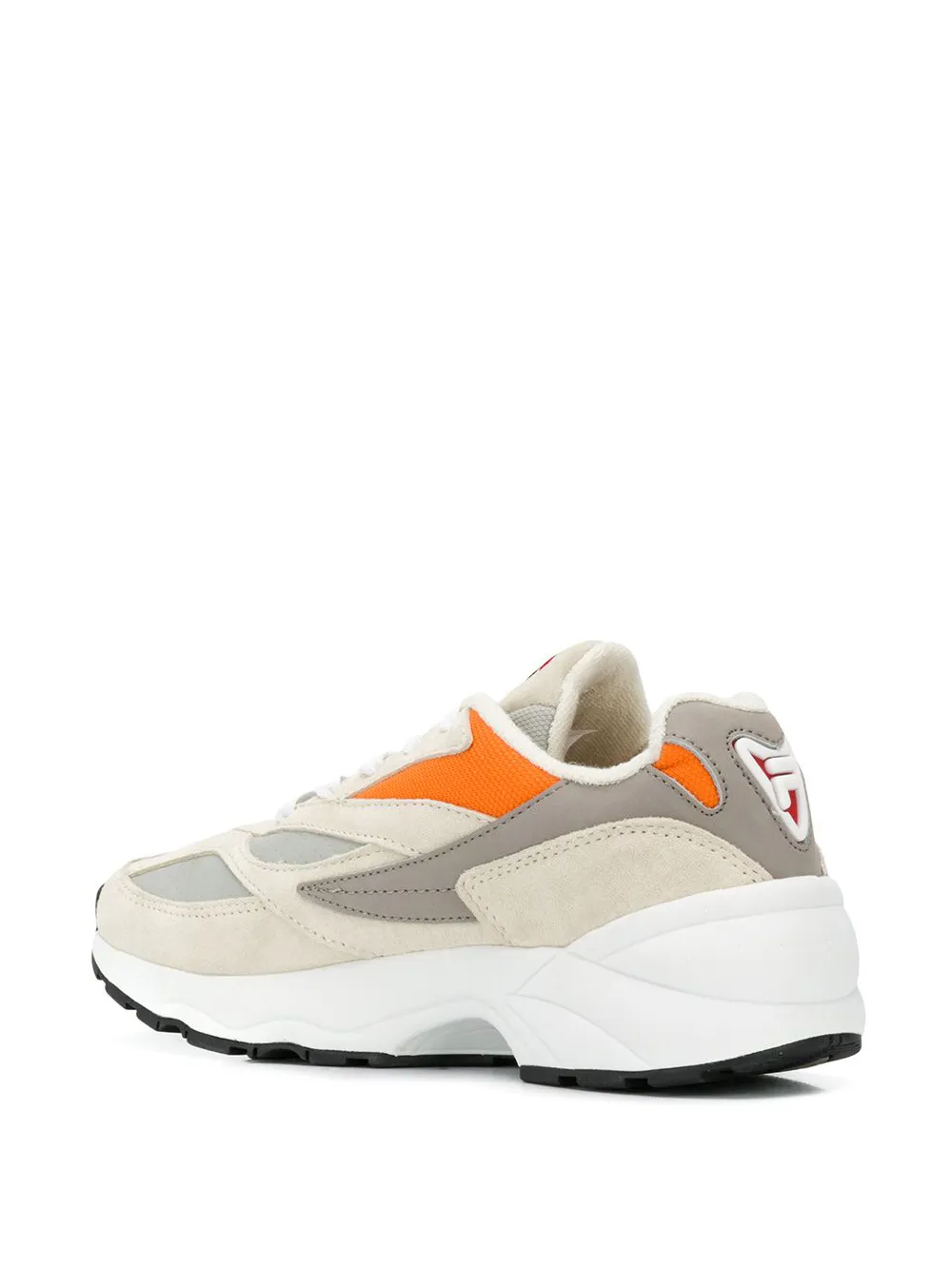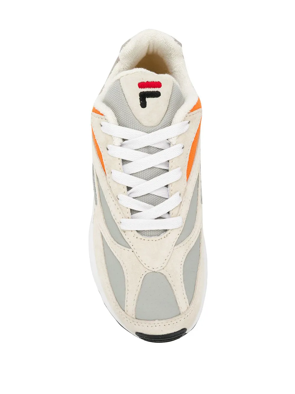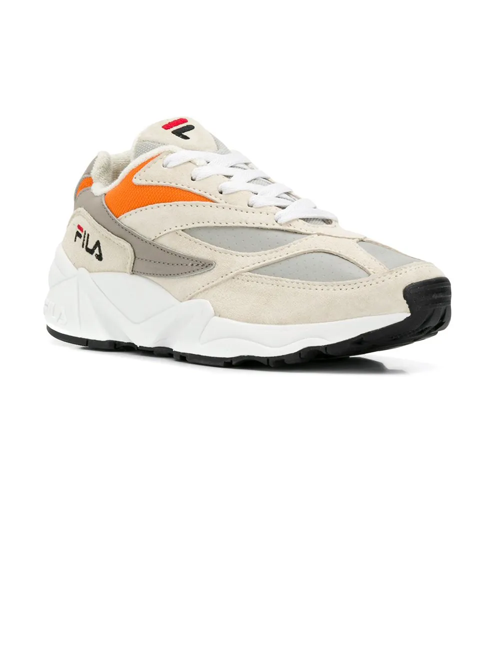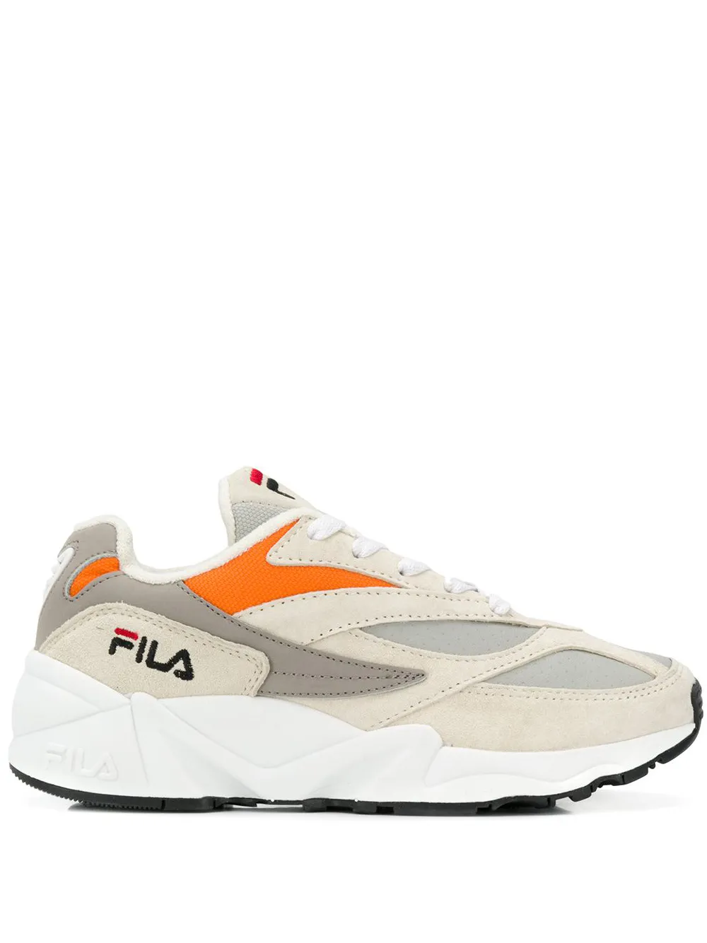 Кроссовки 'V94M' от Fila. Миндалевидный носок, шнуровка спереди и плоская резиновая подошва.
