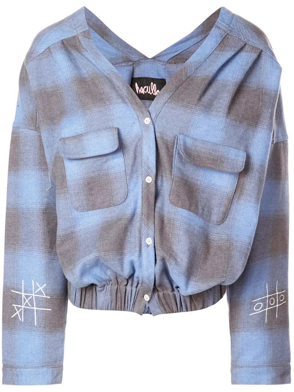 Блузка в клетку от Haculla. Застежка на кнопках, V-образная горловина, эластичный пояс, два нагрудных кармана и стандартная длина. Цвет: синий.