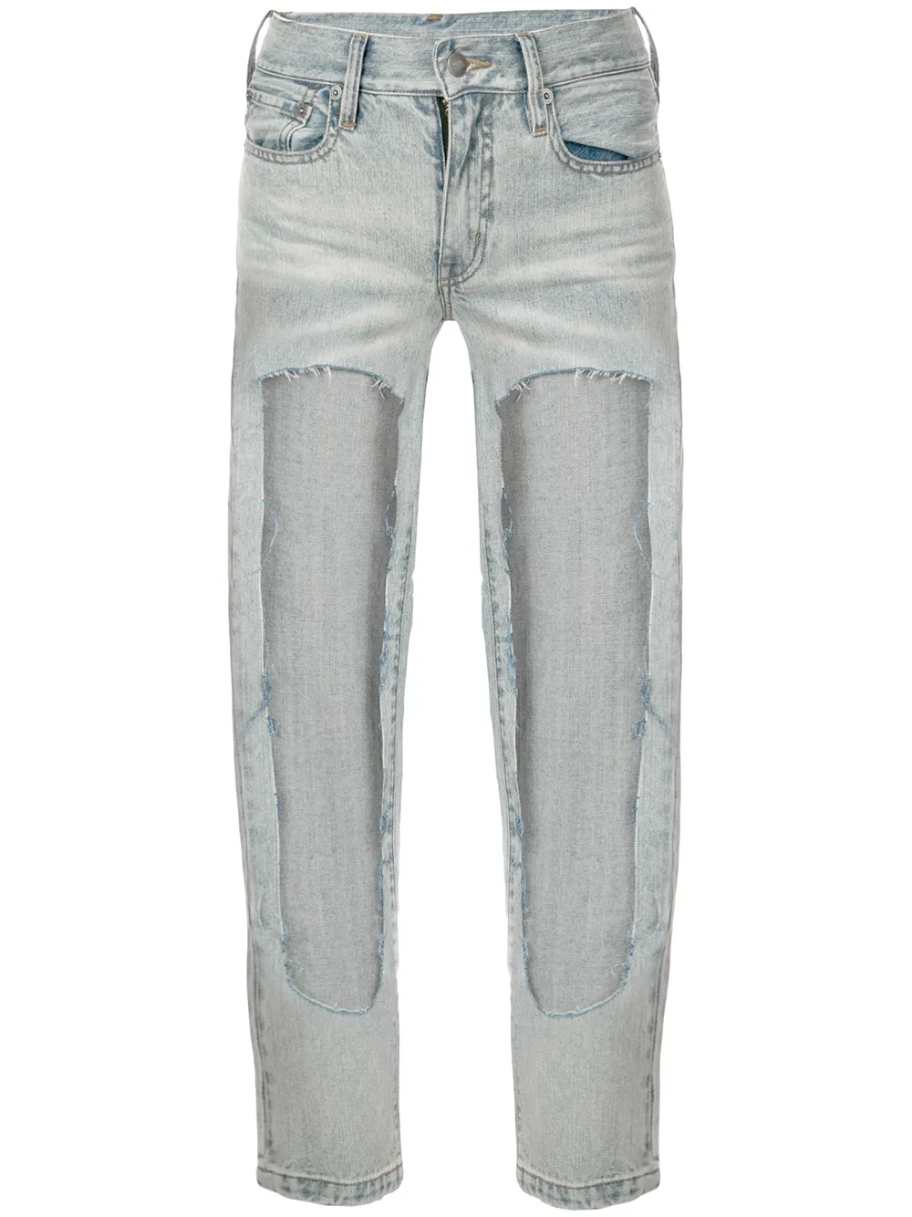 Джинсы с вырезными деталями от Haculla. Пояс с петлями для ремня, классическая пятикарманная модель, ширинка на молнии с пуговицей и эффект потертости.