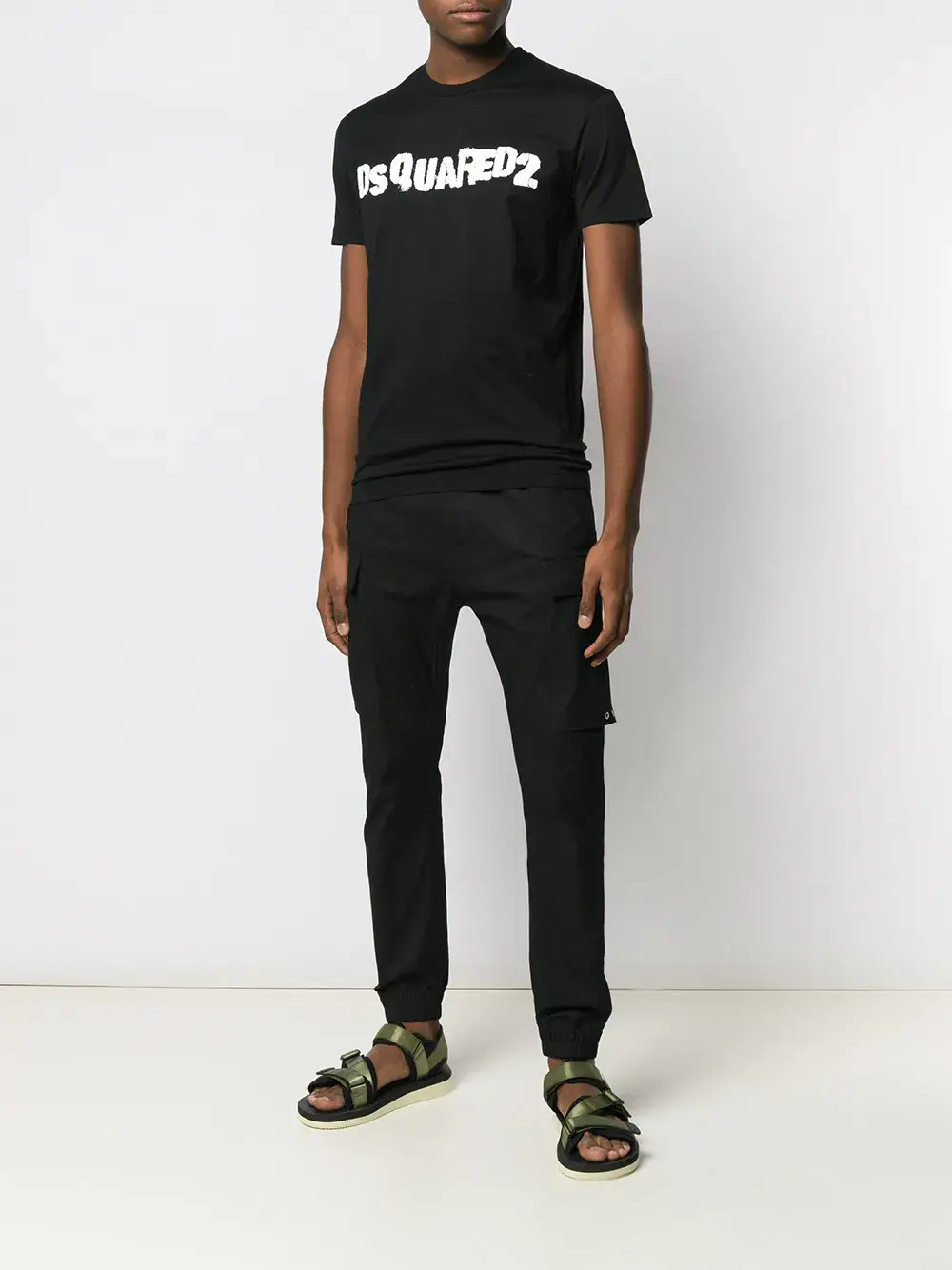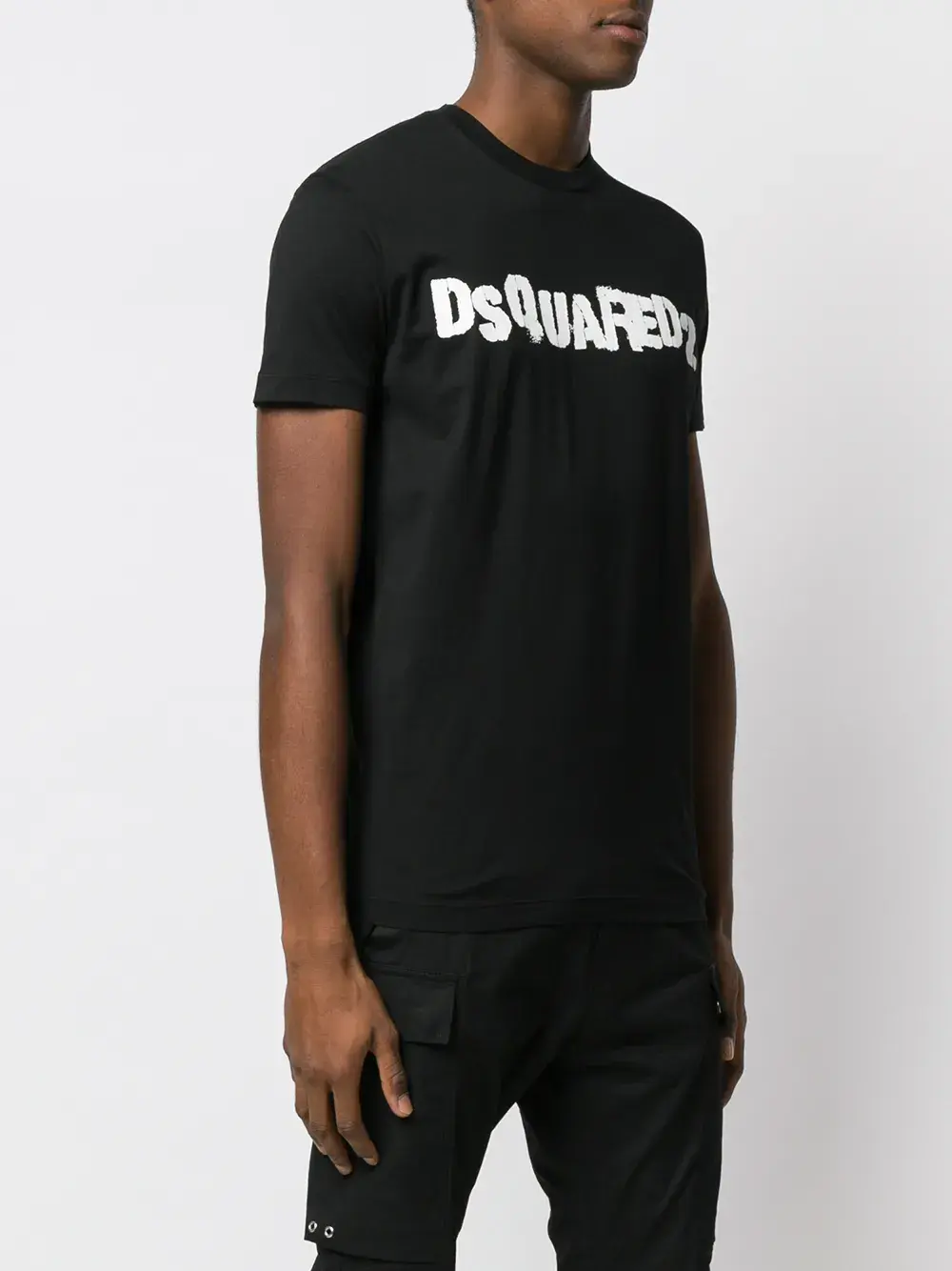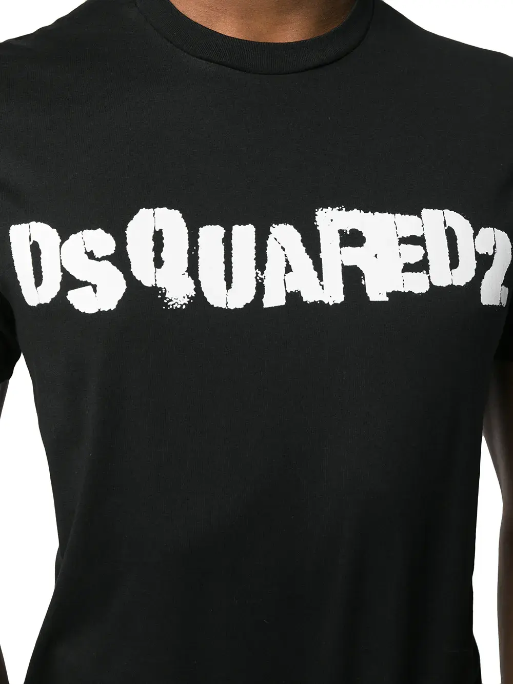 Футболка с логотипом от Dsquared2 (Дискуэд). Круглый вырез, принт с логотипом спереди, короткие рукава и прямой подол. Цвет: черный.