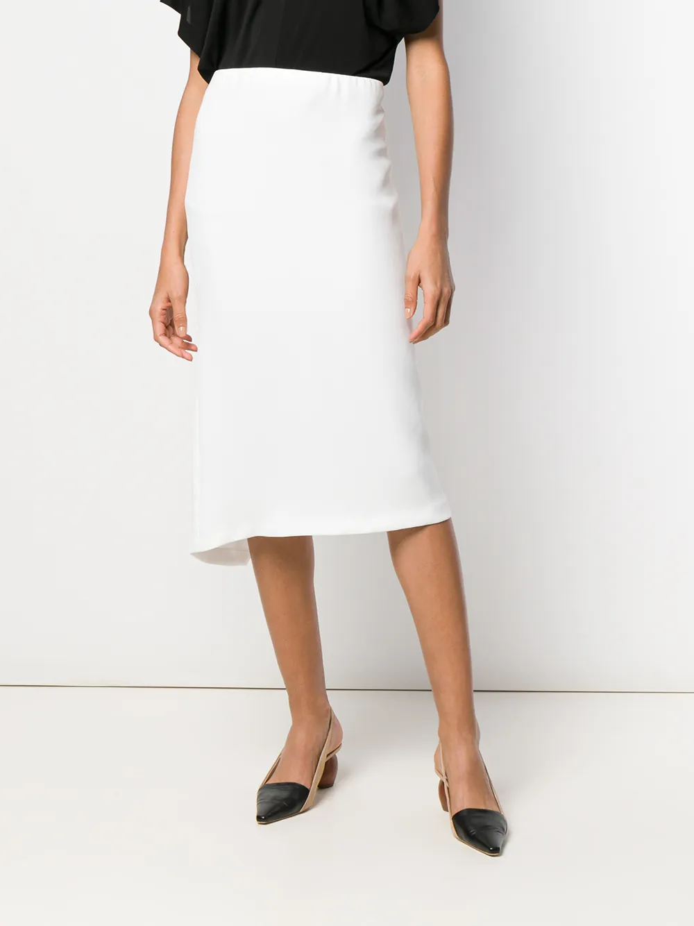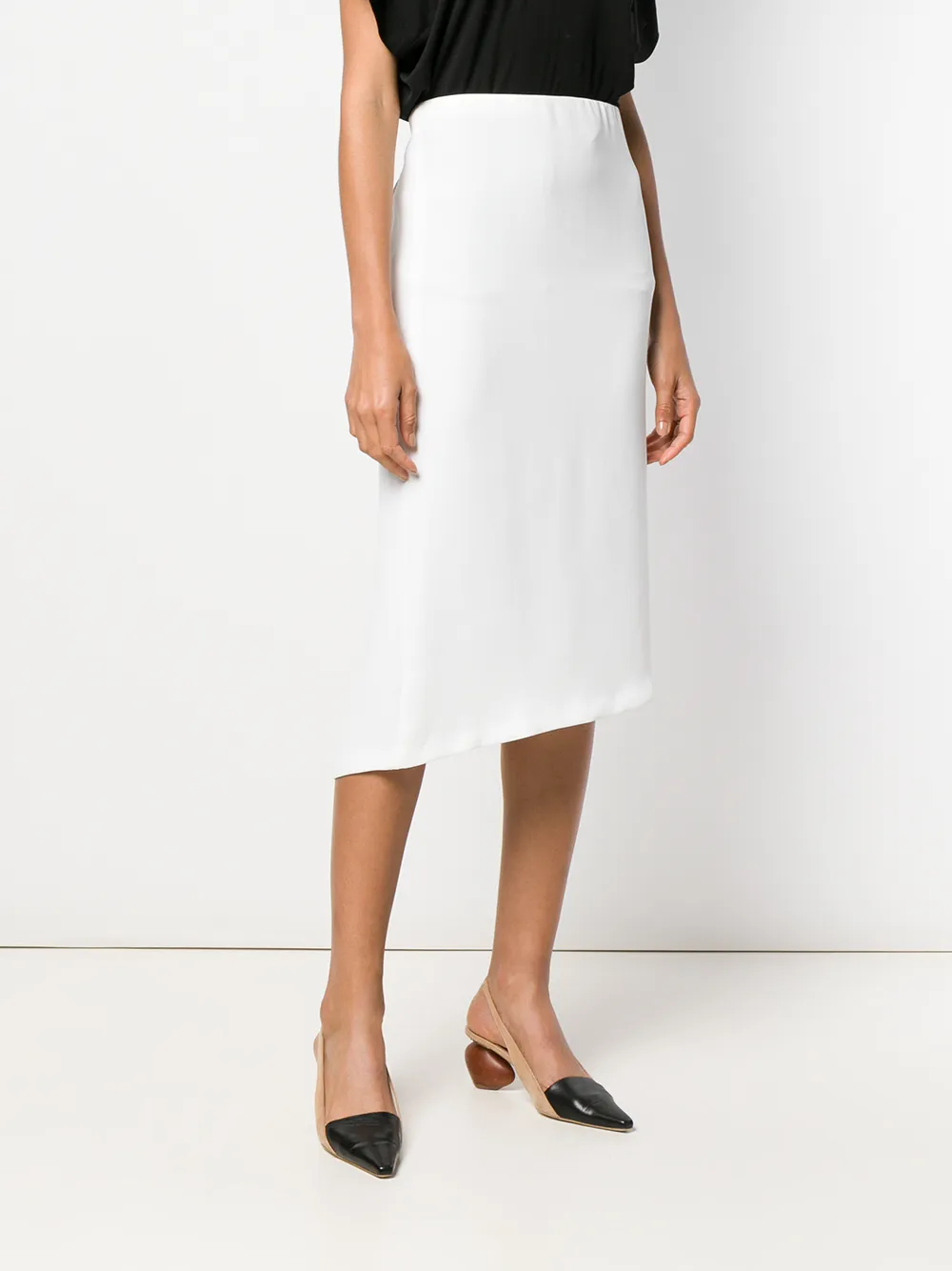Асимметричная юбка миди от Poiret. Завышенная посадка, асимметричный подол и средней длины. Цвет: белый.
