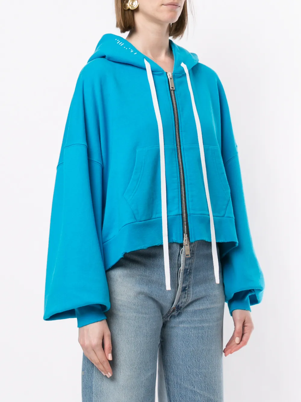 Куртка-бомбер с капюшоном от Unravel Project. Капюшон, затягивающийся на шнурок, застежка на молнии спереди, длинные рукава и подол и манжеты в рубчик. Цвет: синий.