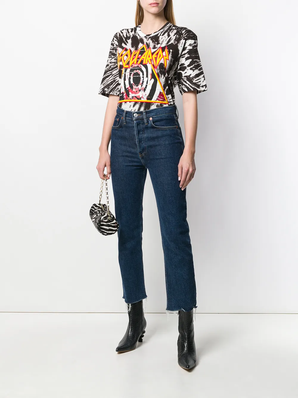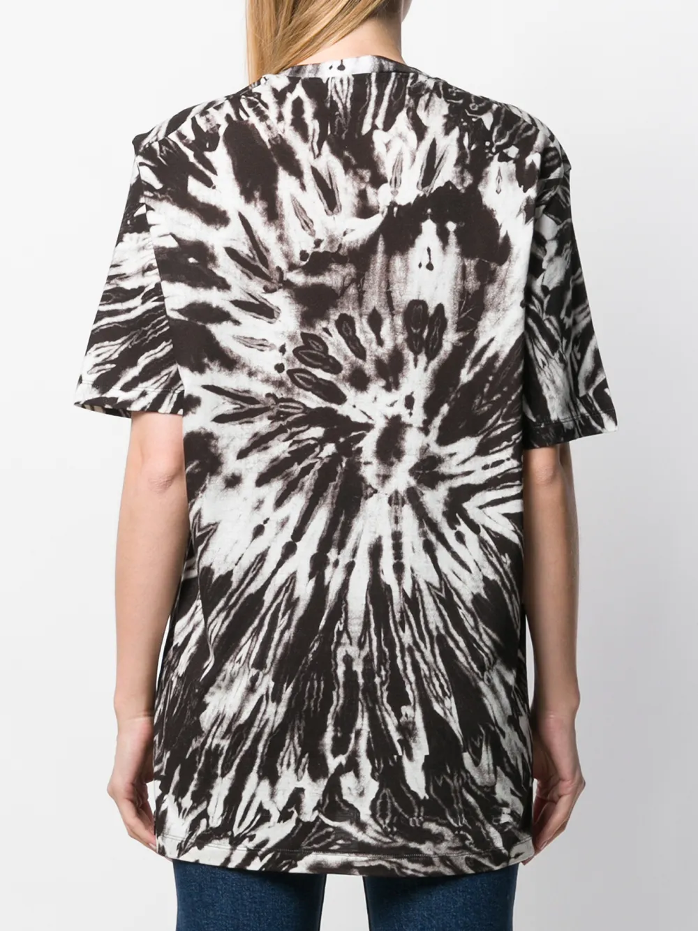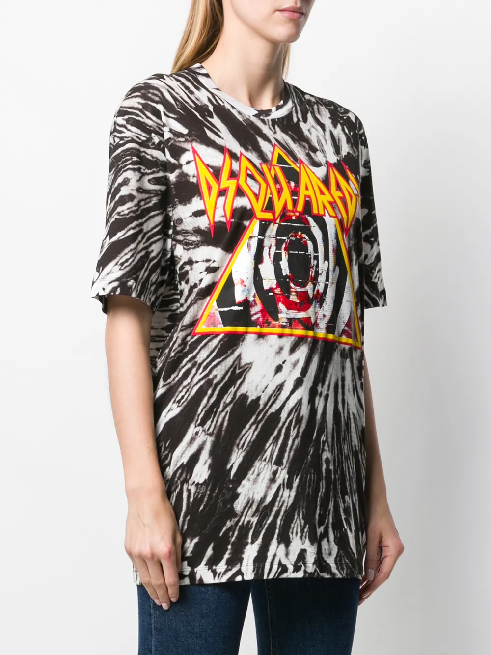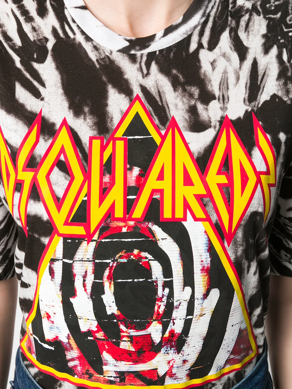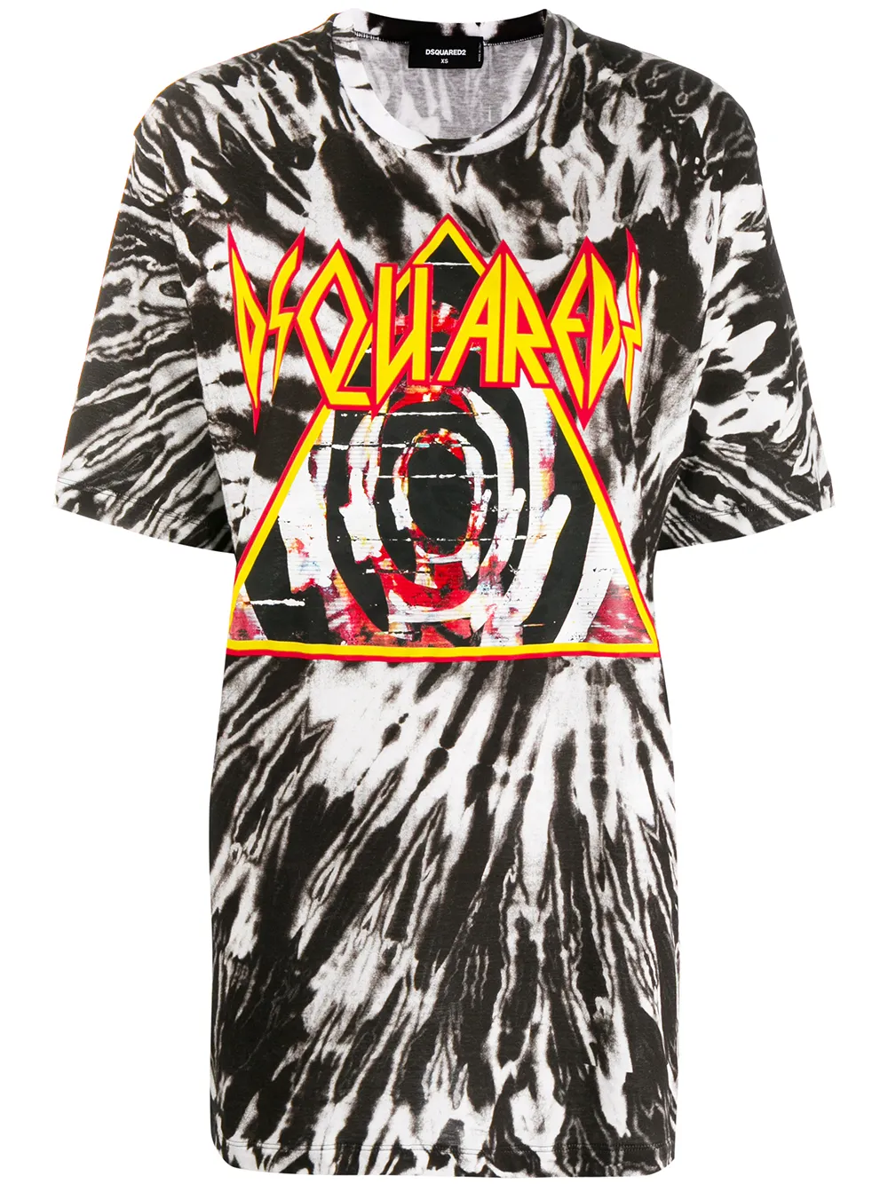 Футболка с принтом тай-дай от Dsquared2 (Дискуэд). Круглый вырез под горло, короткие рукава, прямой подол, удлиненная модель и принт с логотипом спереди.
