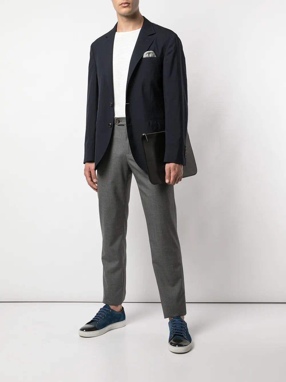 Пиджак с V-образным вырезом от Brunello Cucinelli (Брунелло Кучинелли). Зазубренные лацканы, V-образная горловина, застежка на пуговицах спереди и закругленный подол.