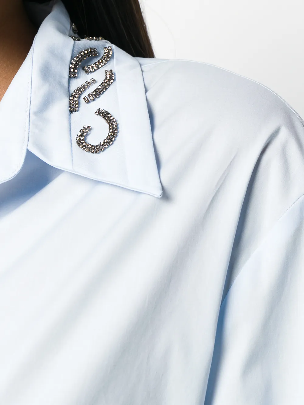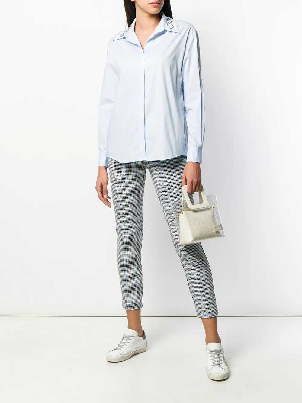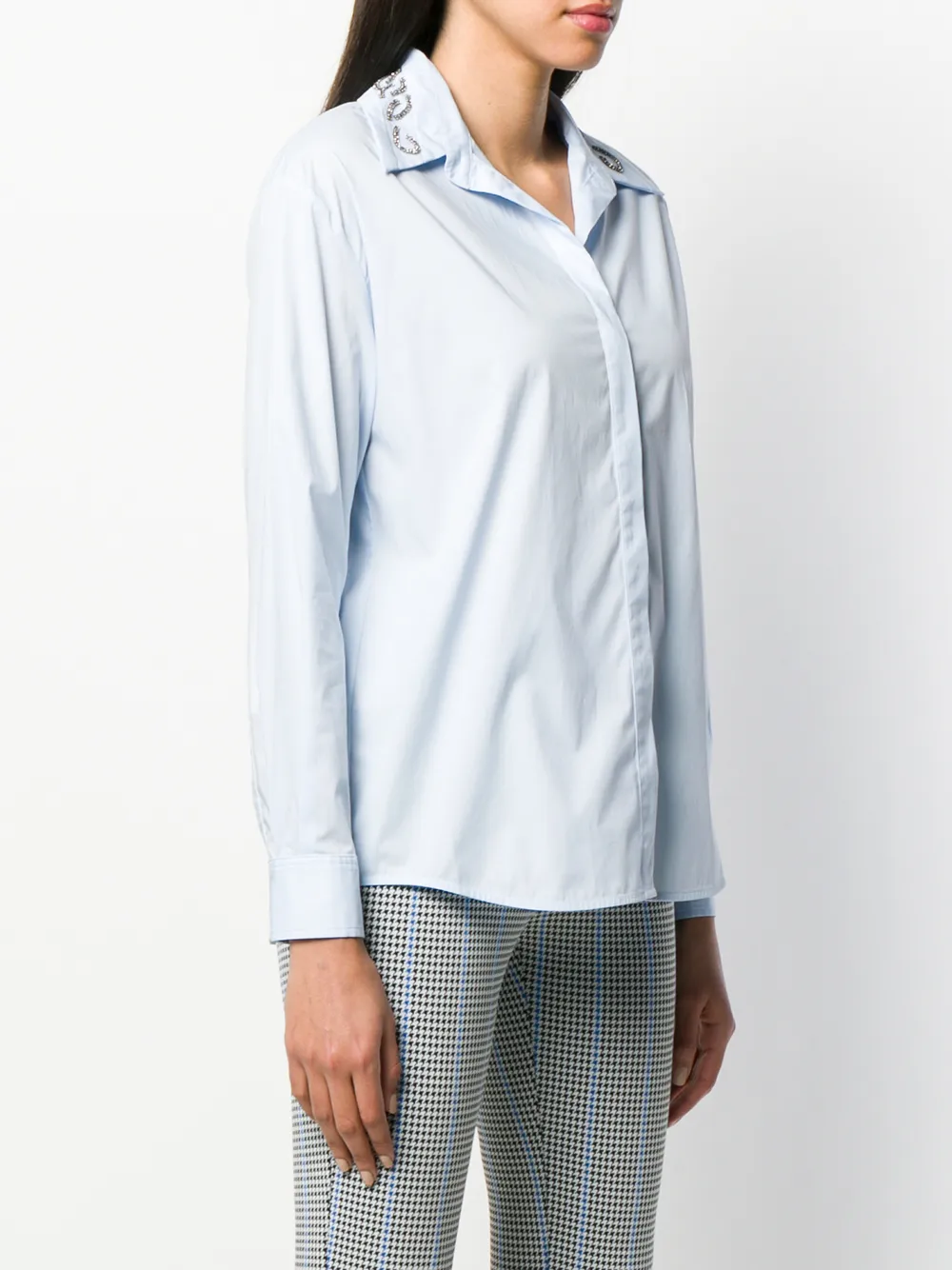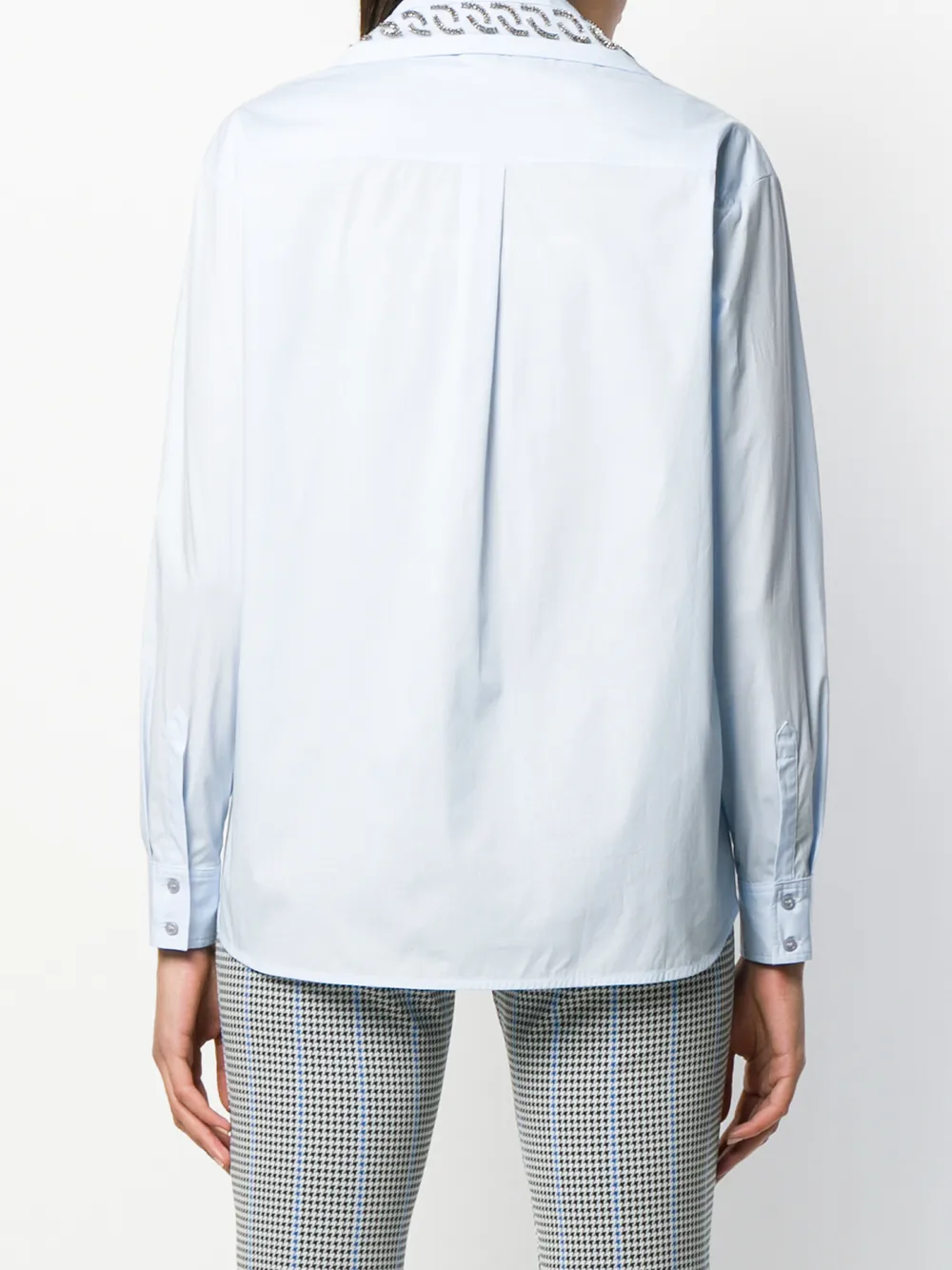Рубашка с декорированным воротником от Pinko. Длинные рукава, потайная пуговичная застежка и манжеты на пуговицах.