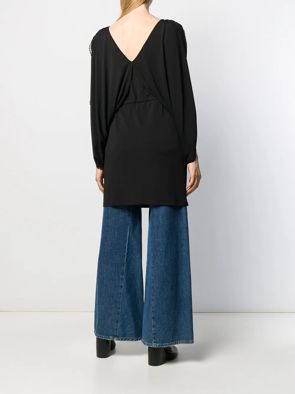 Платье из джерси с V-образным вырезом от See By Chloé. Длинные рукава, драпировка, кулиска на талии, короткая длина и прямой подол. Цвет: черный.