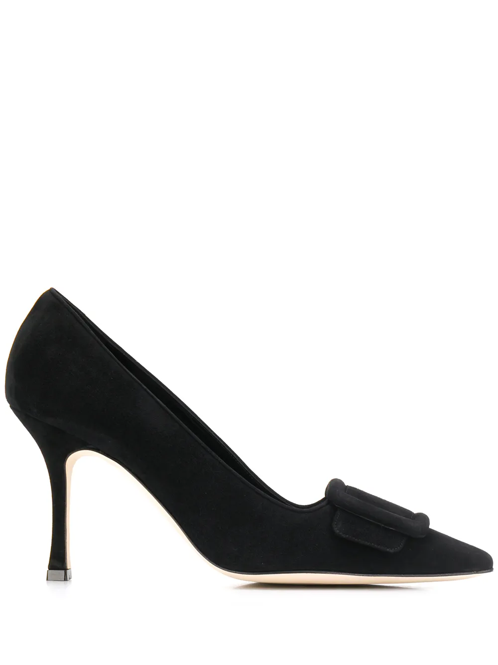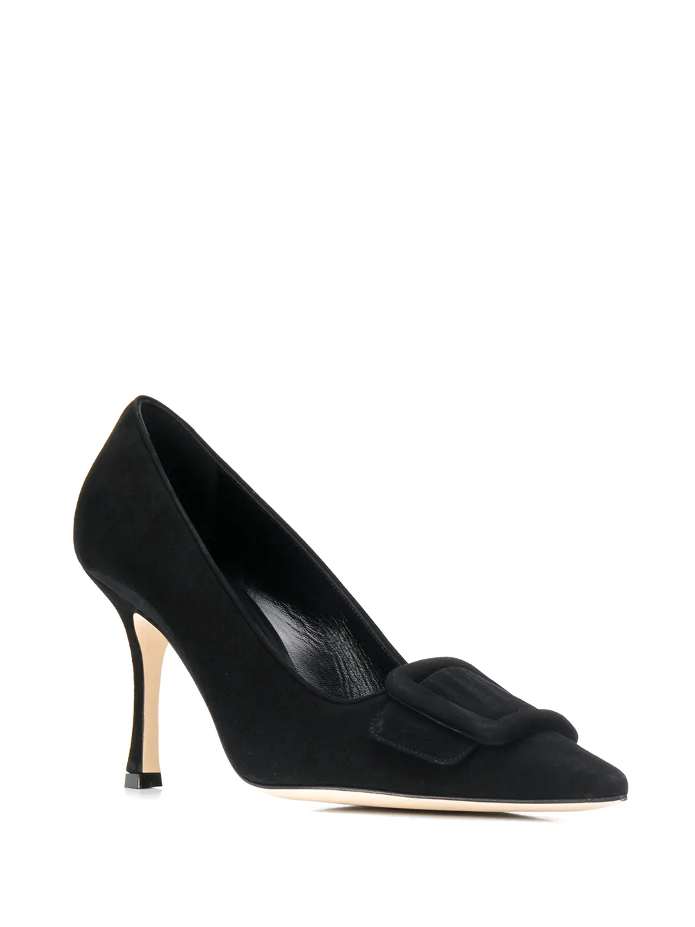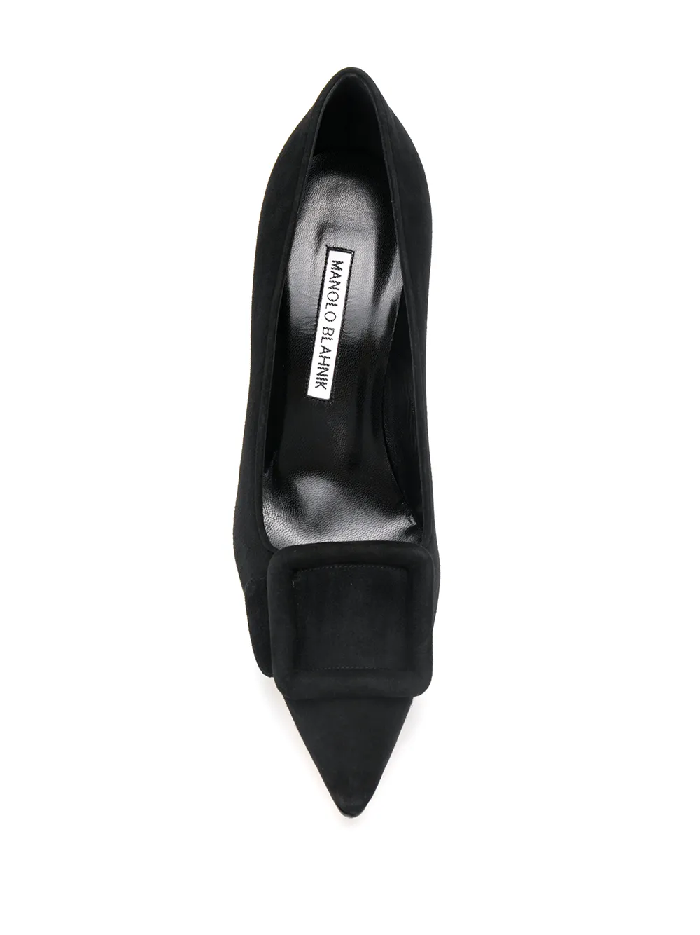 Туфли-лодочки на каблуке от Manolo Blahnik. Стелька с тиснением бренда, заостренный носок, застежка с пряжкой спереди и шпилька средней высоты. Цвет: черный.