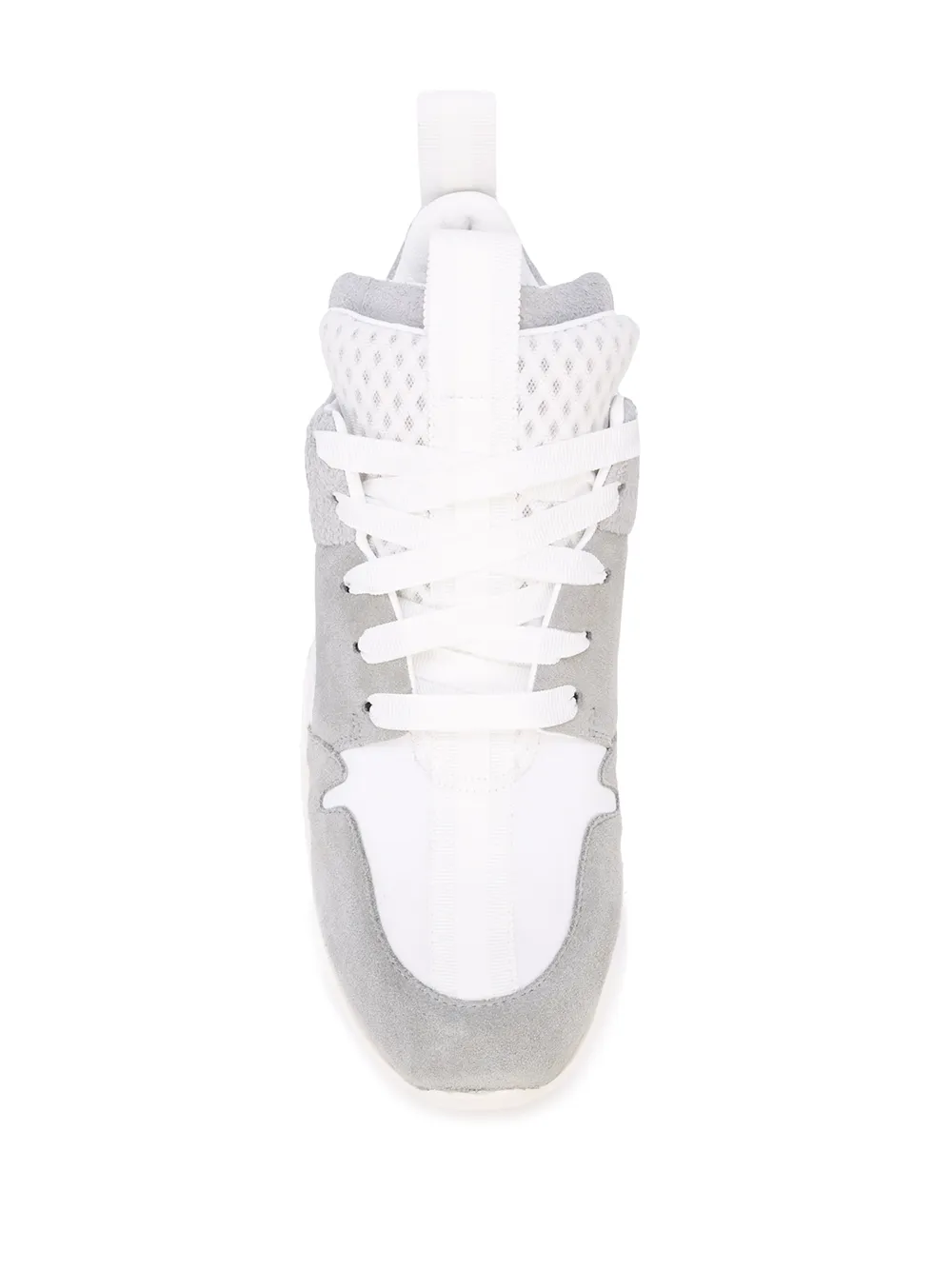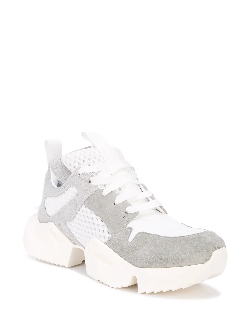 Кроссовки со вставками от Unravel Project. Закругленный носок, панели в сетку, петля для подтягивания сзади, фирменная стелька и белая резиновая подошва.