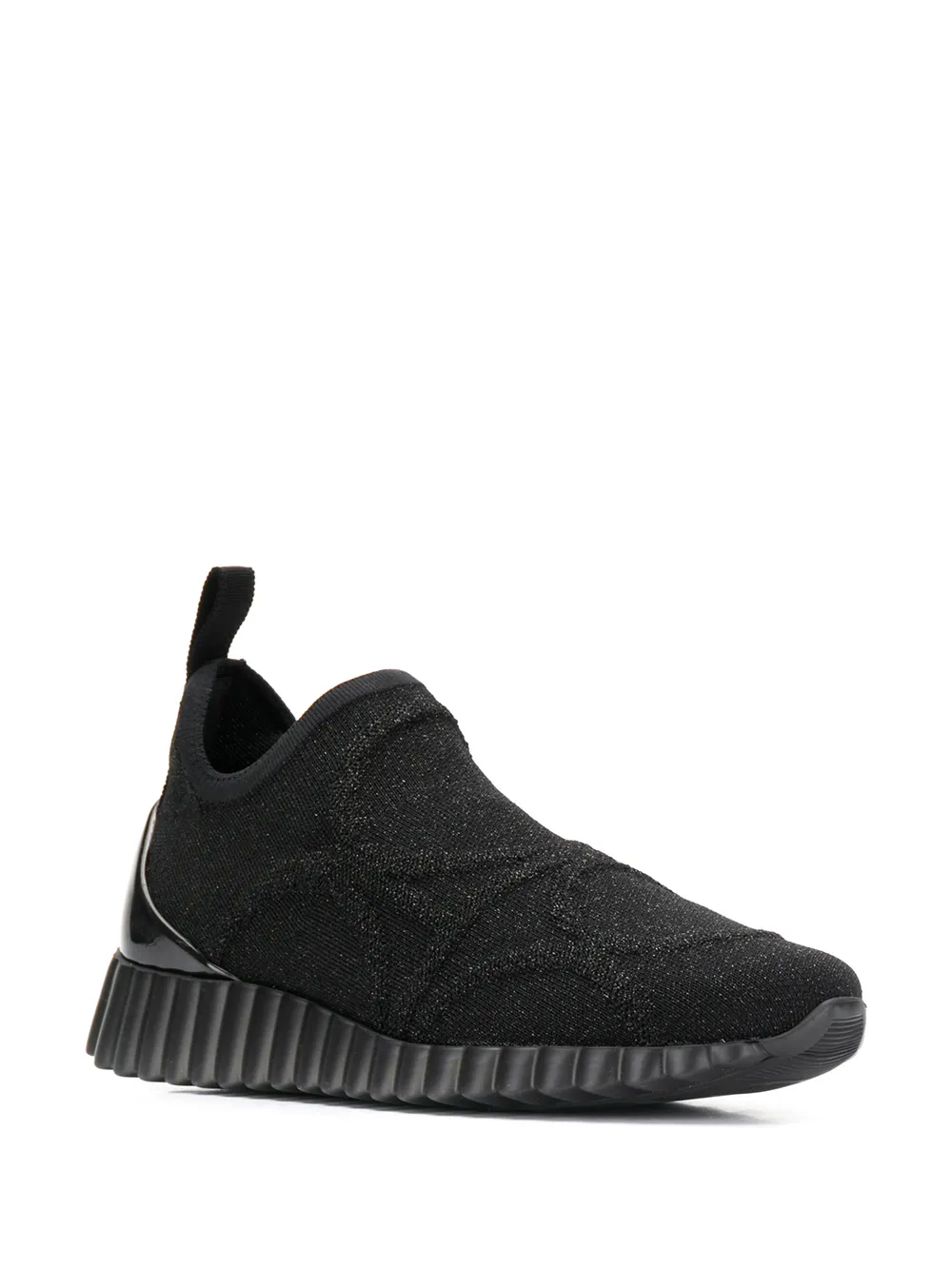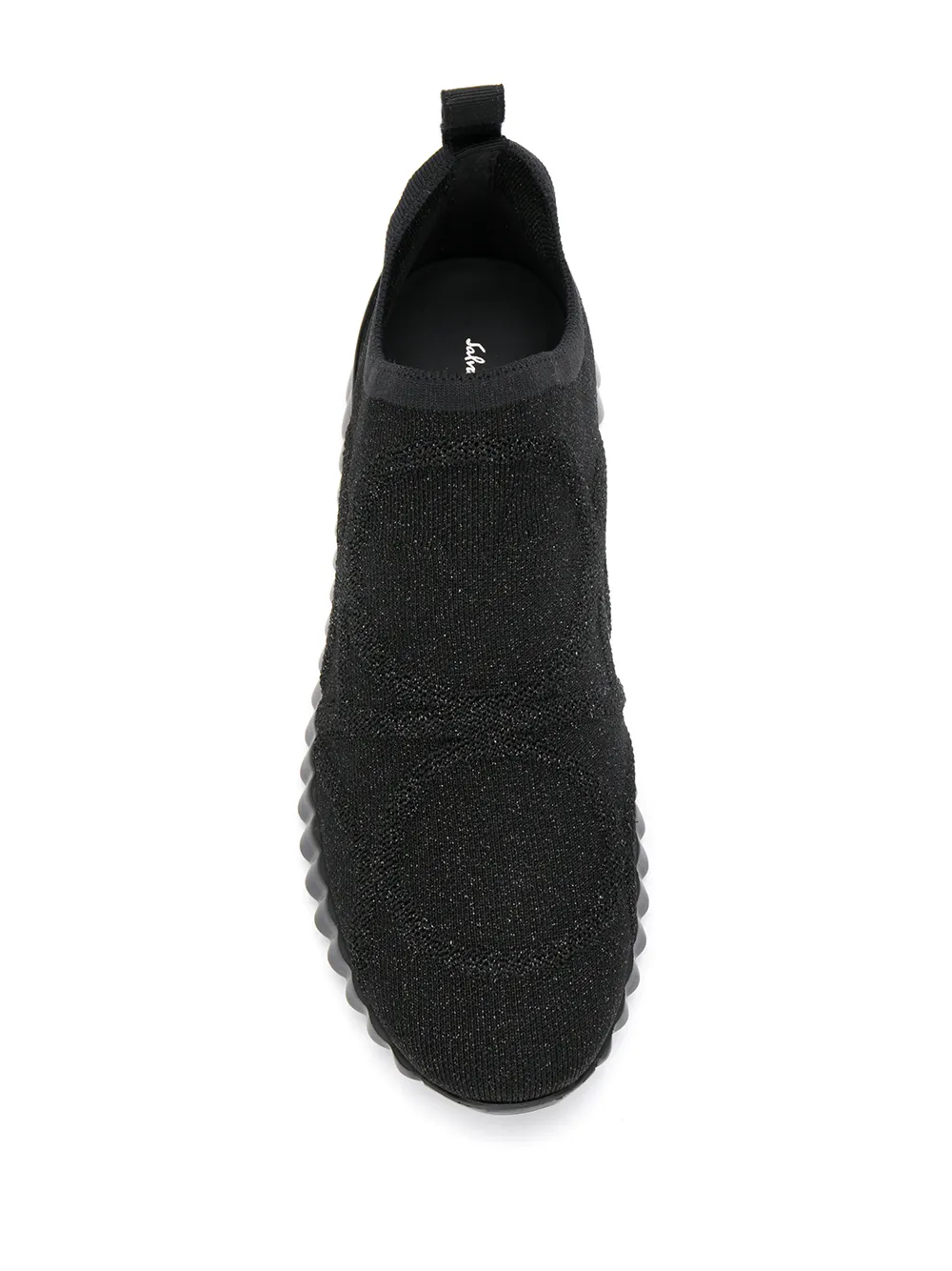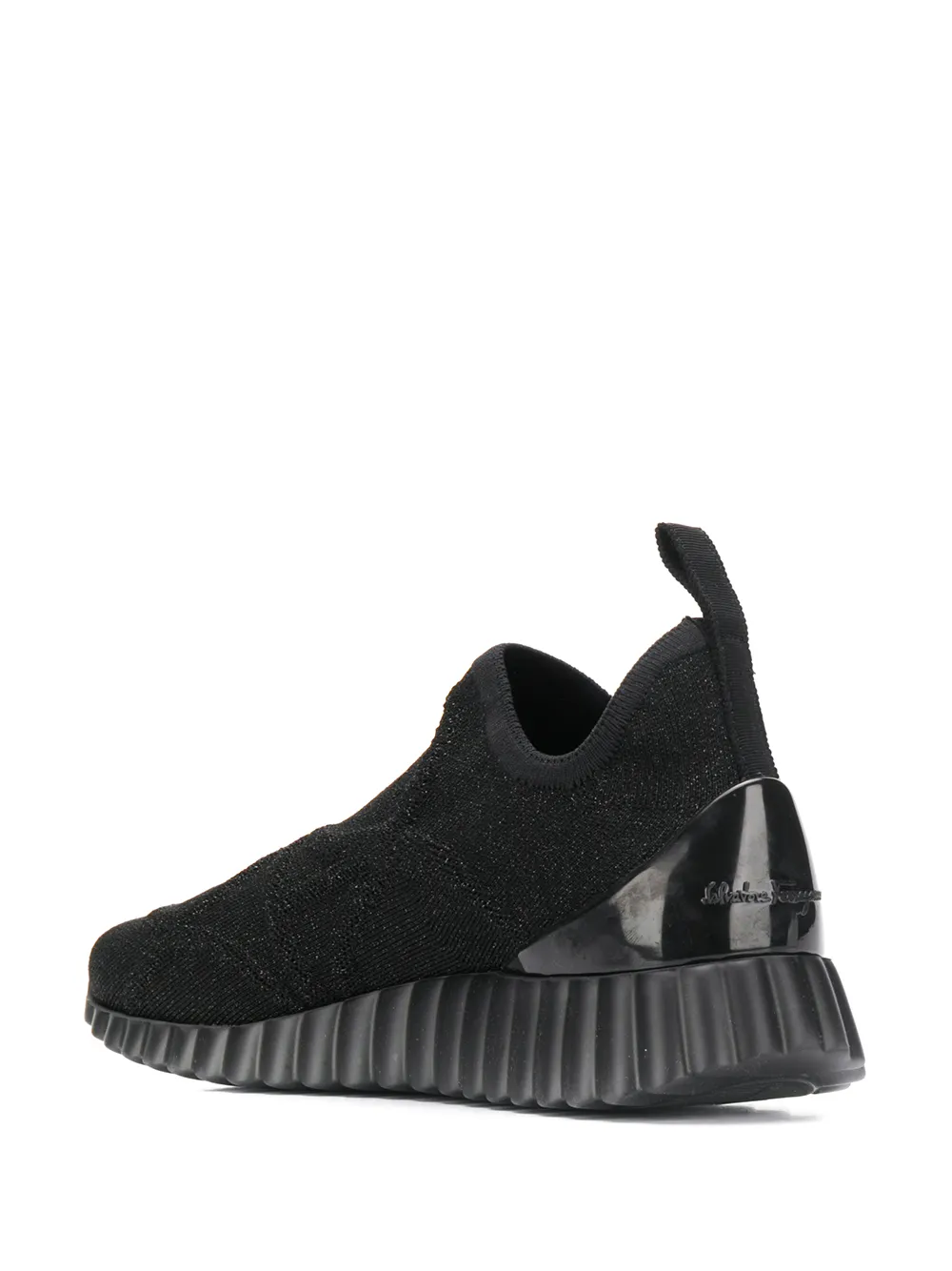 Кроссовки на ребристой подошве от Salvatore Ferragamo (Сальваторе Феррагамо). Модель слип-он, без застежки, петля для подтягивания сзади, тканый дизайн, миндалевидный носок и ребристая резиновая подошва. Цвет: черный.