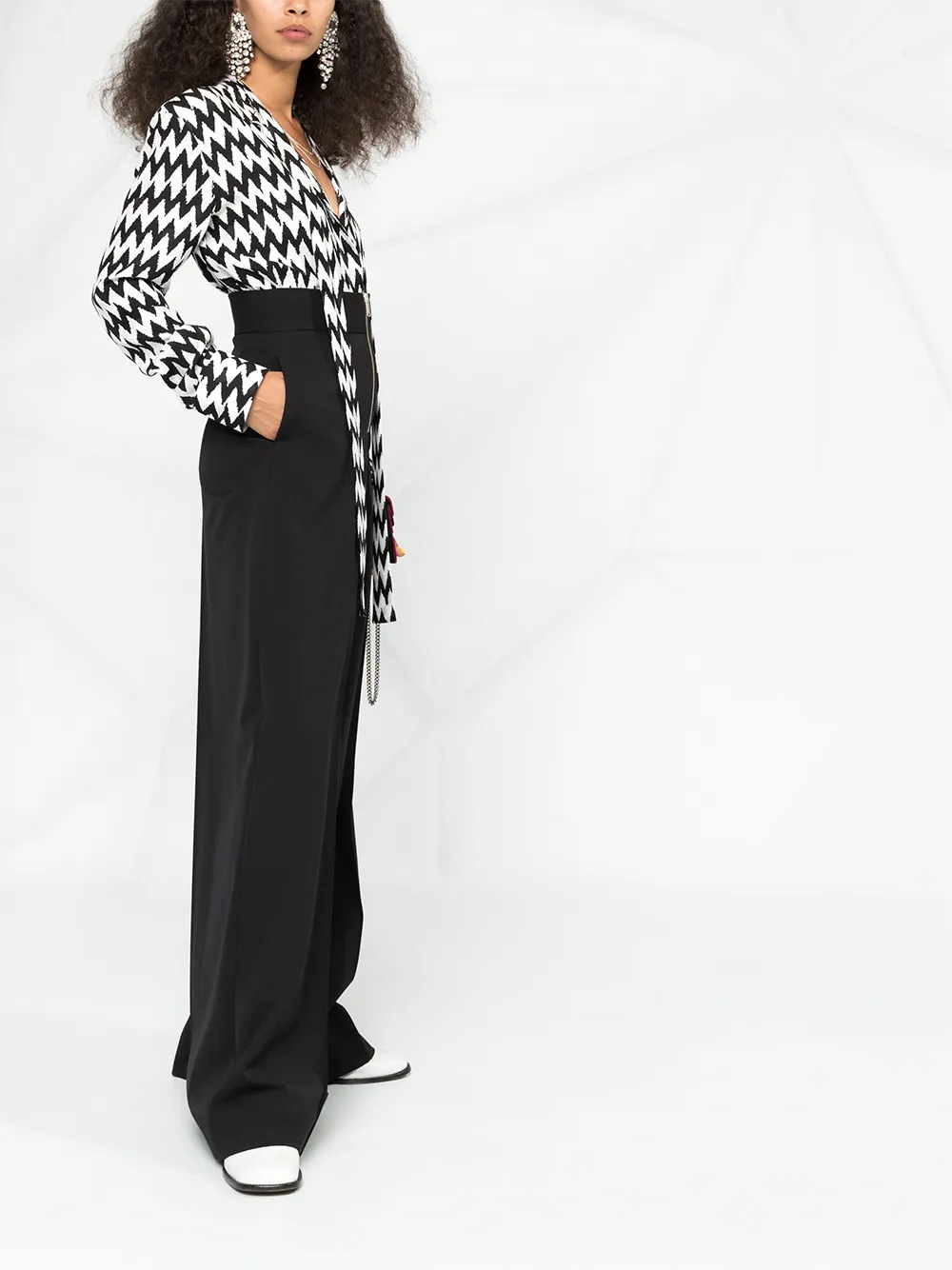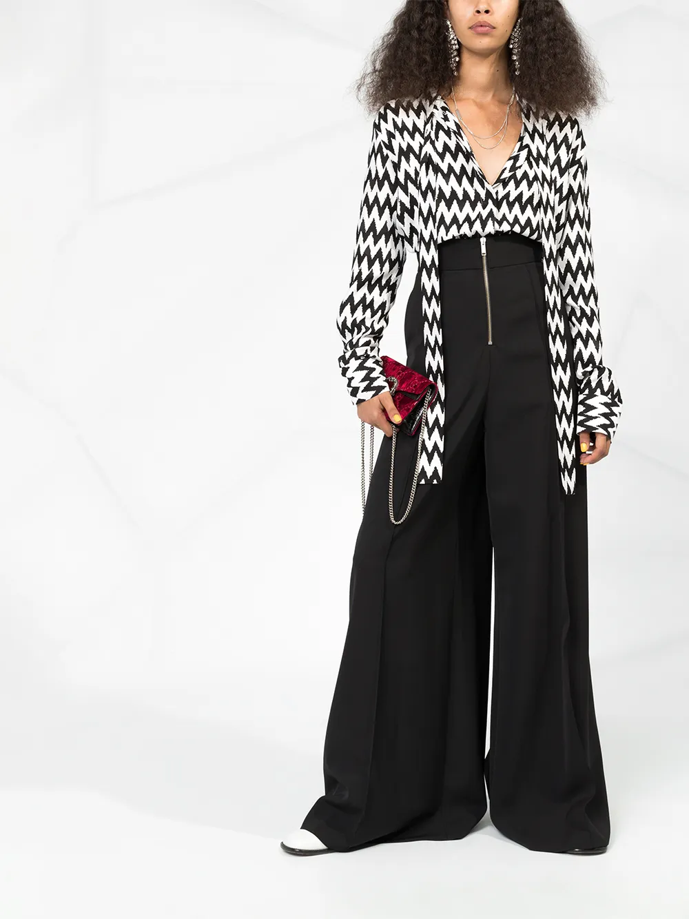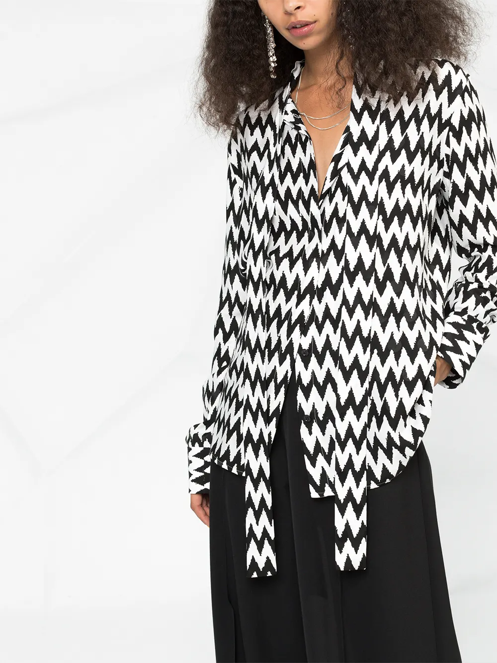 Блузка с бантом и принтом от Haider Ackermann. Воротник-стойка с бантом спереди, длинные рукава, дизайн в двух тонах и планка на пуговицах спереди. Цвет: черный.