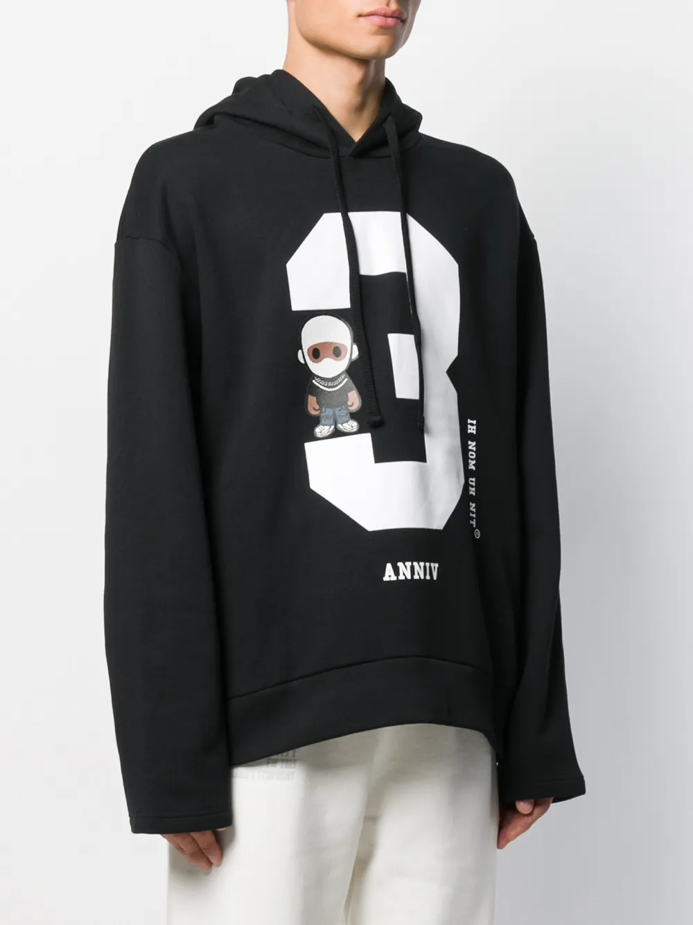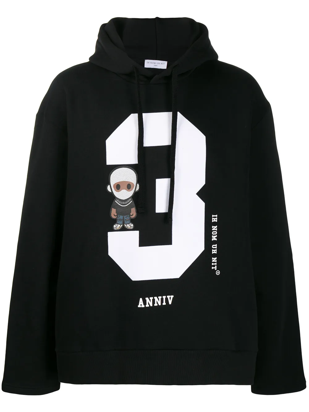 Худи с принтом от Ih Nom Uh Nit. Свободный крой, принт спереди, капюшон на шнурке, приспущенные плечи, длинные рукава и подол и манжеты в рубчик. Цвет: черный.