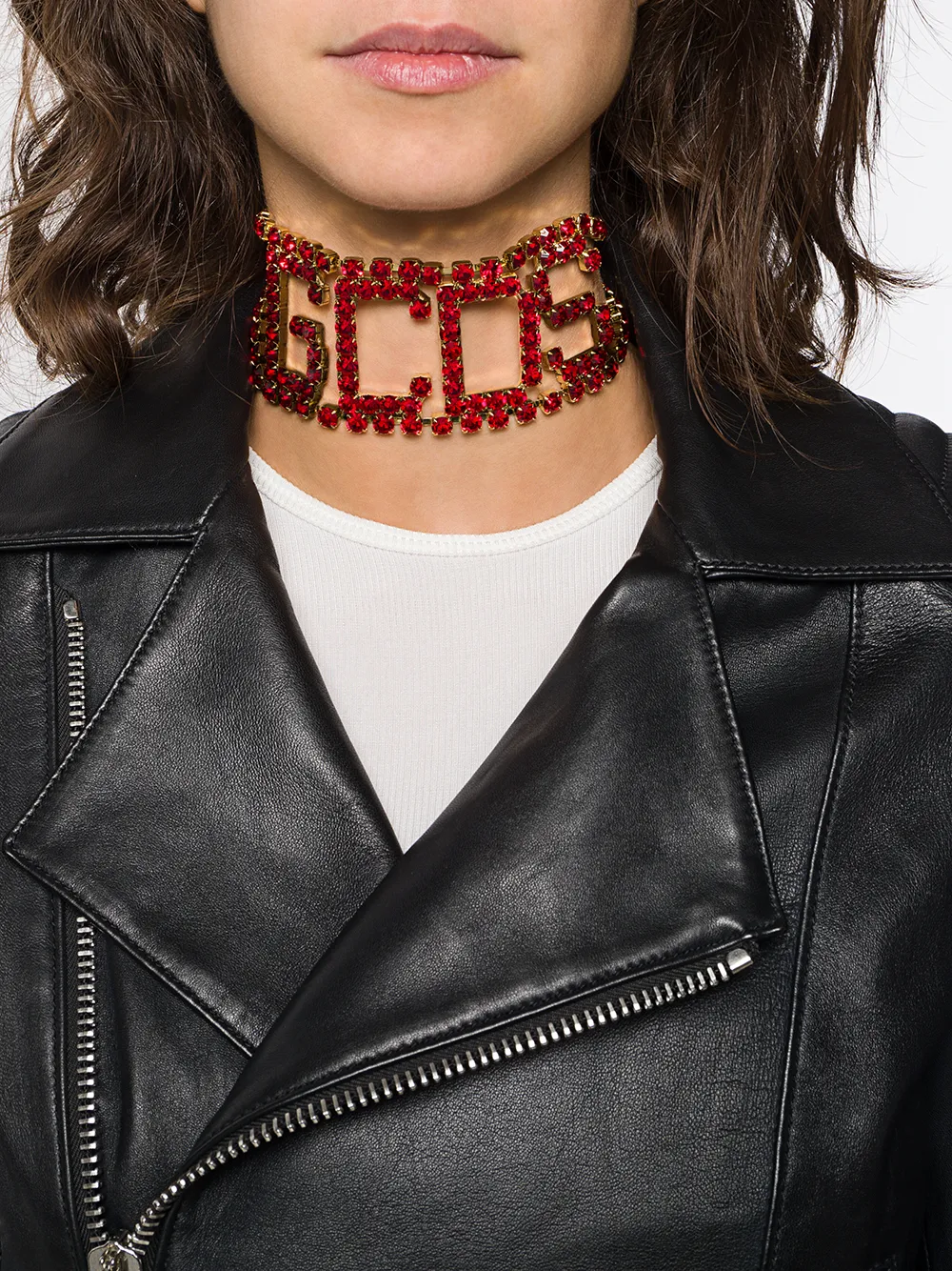 Чокер с логотипом от GCDS. Логотип из кристаллов, золотистая фурнитура, застежка-лобстер и подвеска с выгравированным логотипом. Цвет: красный.