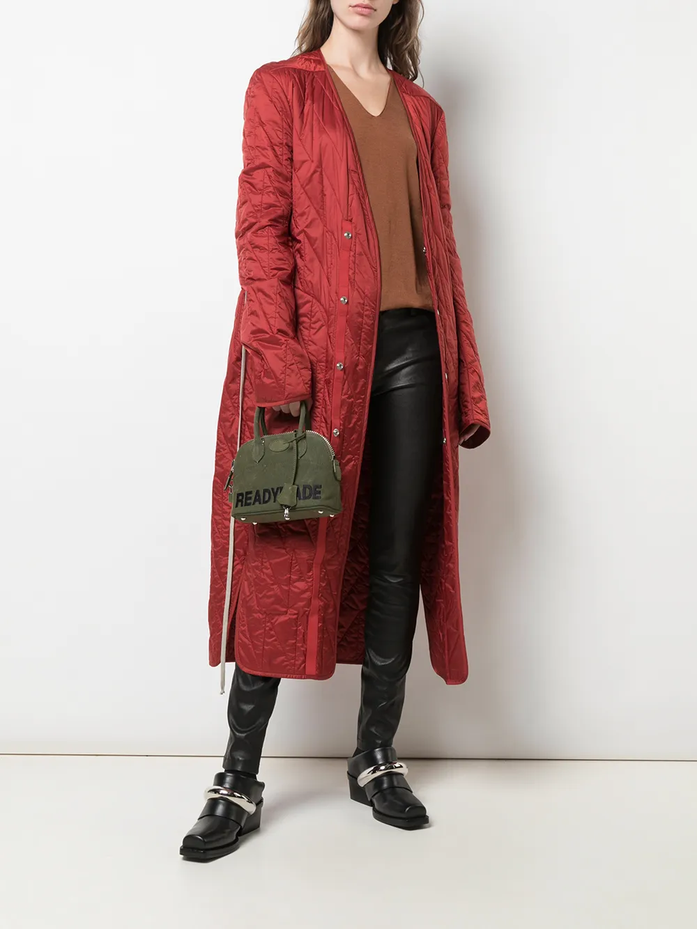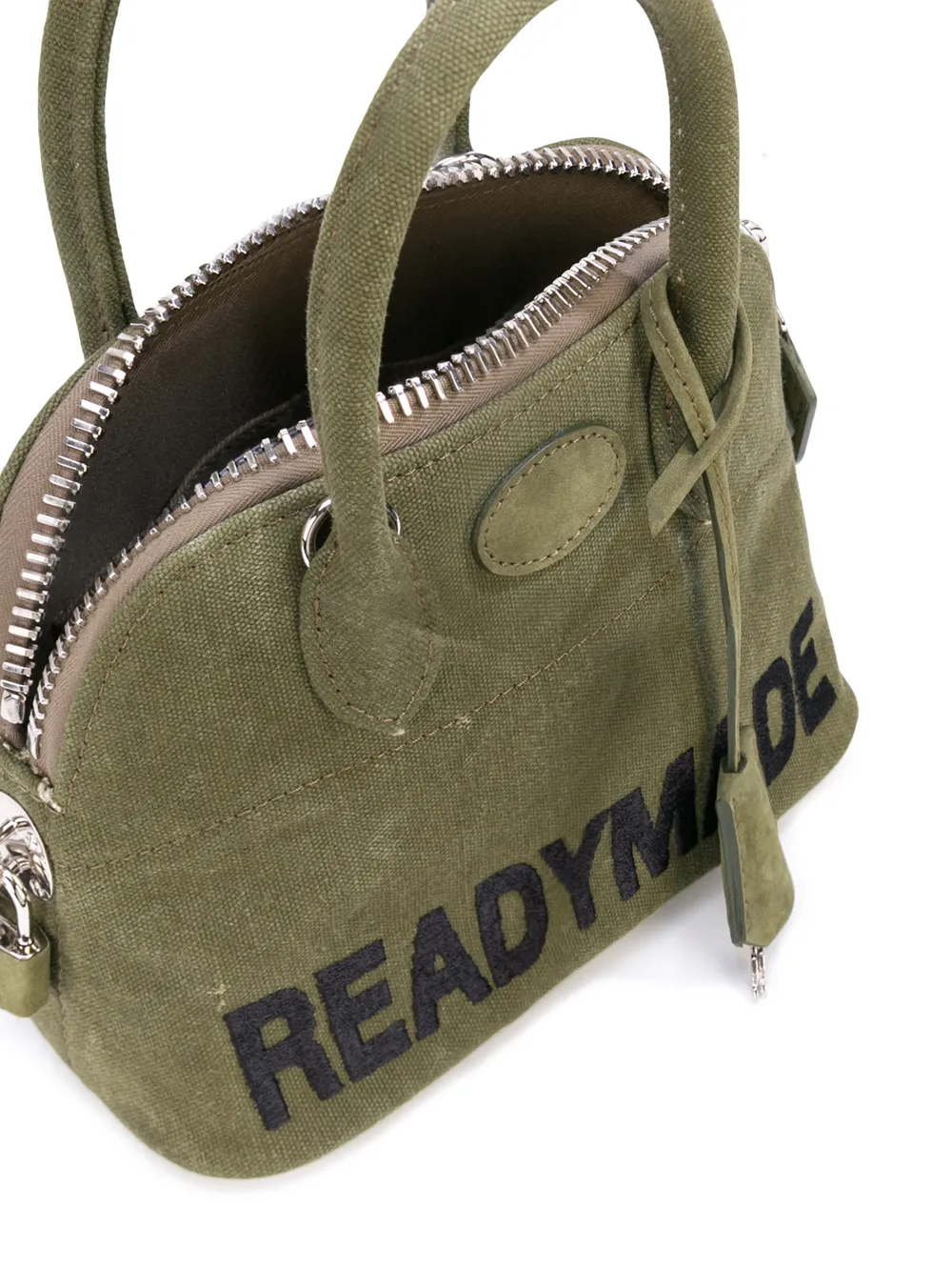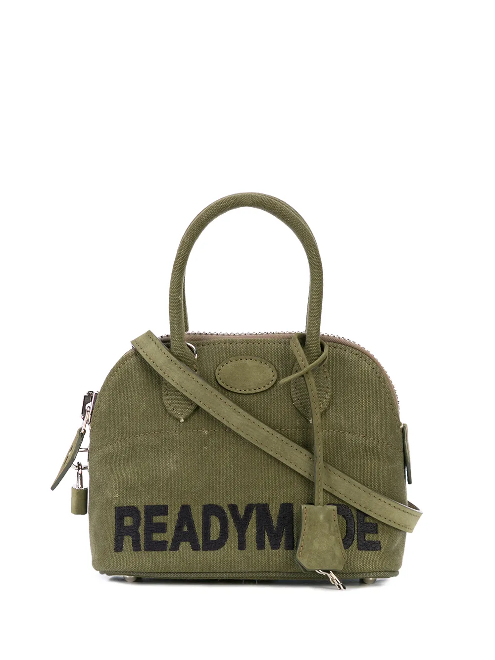 Сумка на плечо с контрастными логотипом от Readymade. Верхние ручки, застежка на молнии сверху, регулируемый ремень на плечо и кожаный ярлык. Цвет: зеленый.