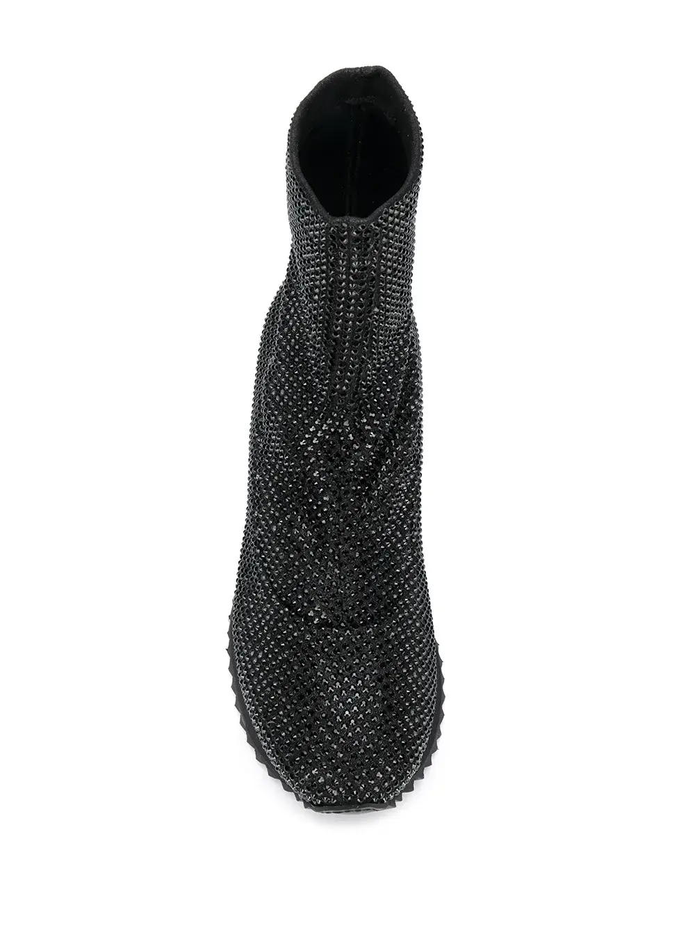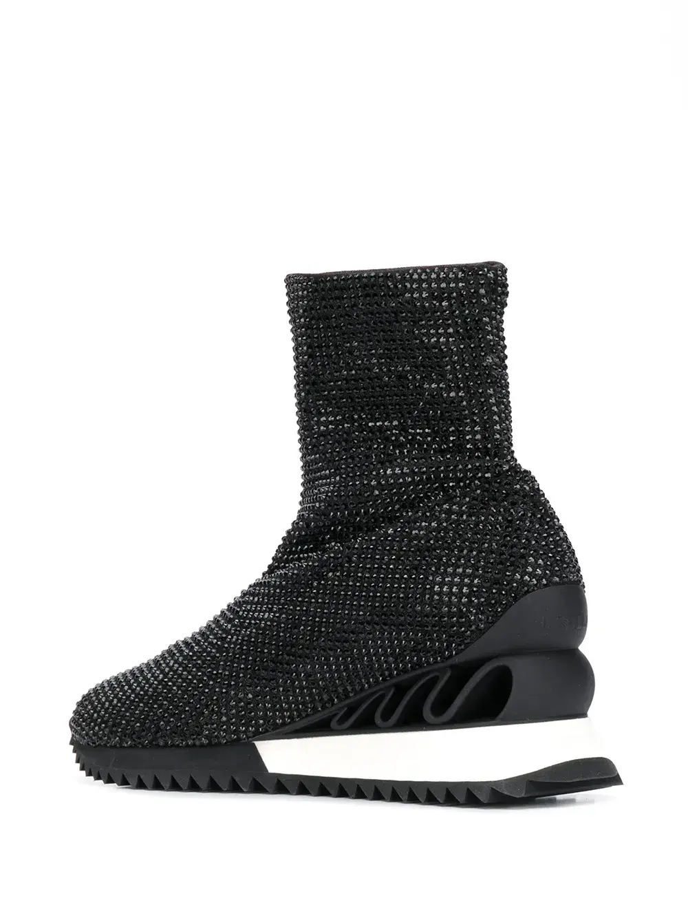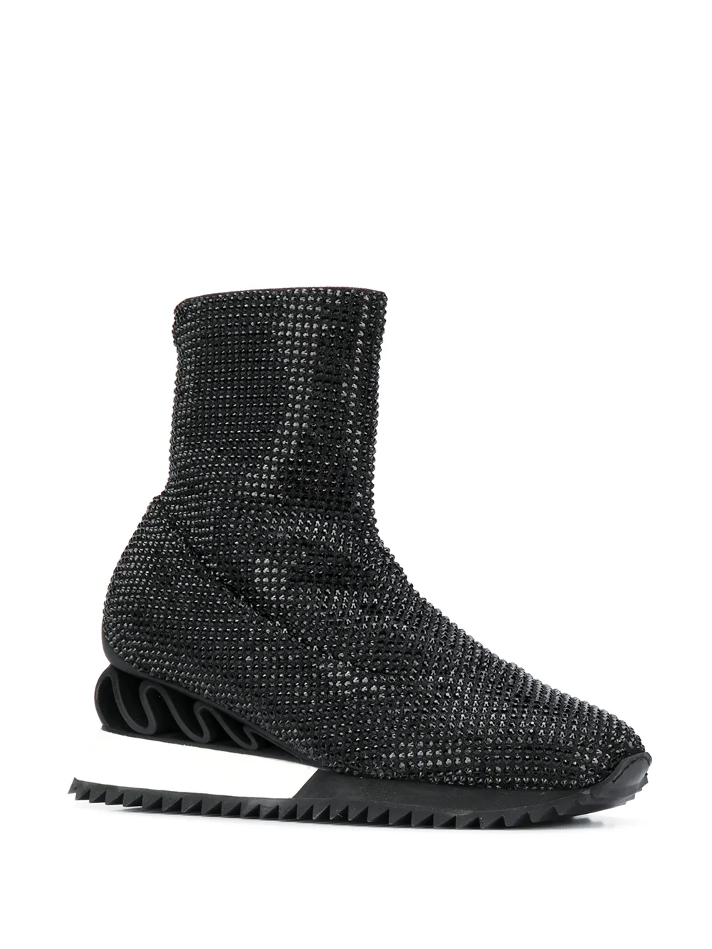 Кроссовки Reiko Wave от Le Silla. Украшение из кристаллов, закругленный носок, эластичная модель, модель без застежки, каблук-танкетка и ребристая резиновая подошва. Цвет: черный.